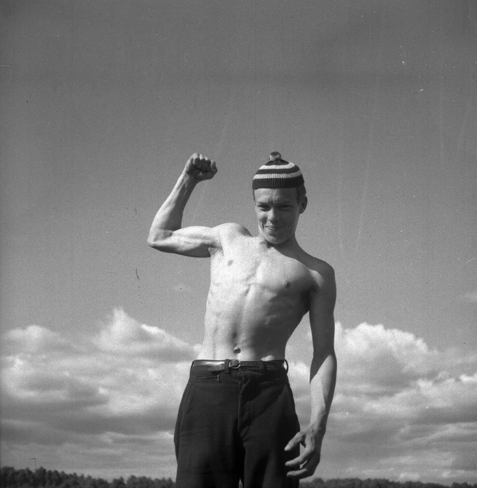 Semesterarbetare i Skåne - yngling visar musklerna.