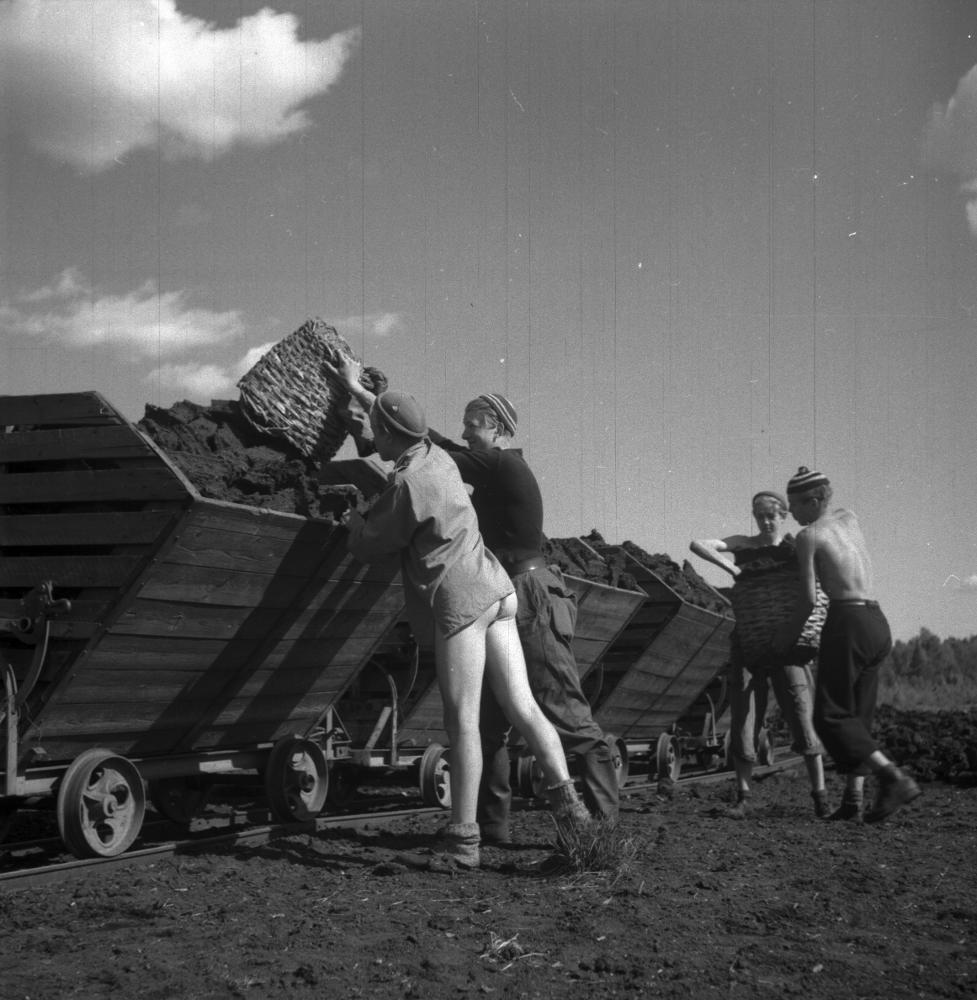 AOL 000807 :: sommarjobb, torvmosse, sommarlov, torvtäkt, torv, skolungdomar, sommarjobbare, torvupptagning