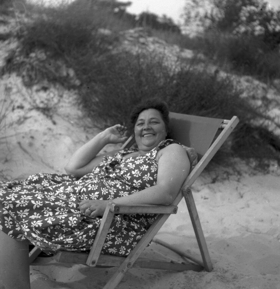 AOL 000897 :: kvinna, badsommar, badliv, semester, bad, sanddyner, solstol, sandstrand, strand, sommar