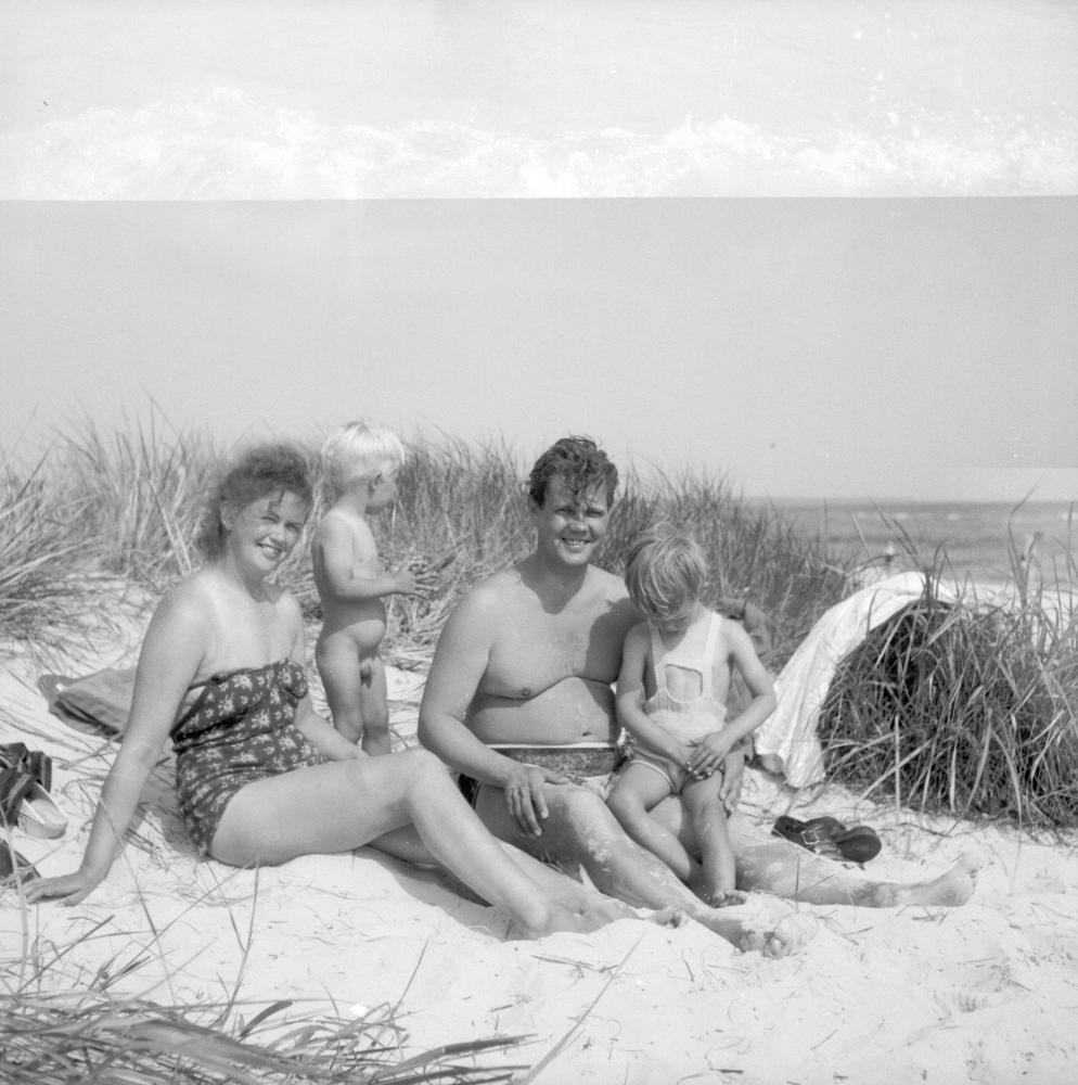 AOL 000903 :: kvinna, badsommar, badliv, semester, barn, bad, man, sanddyner, sandstrand, strand, sommar