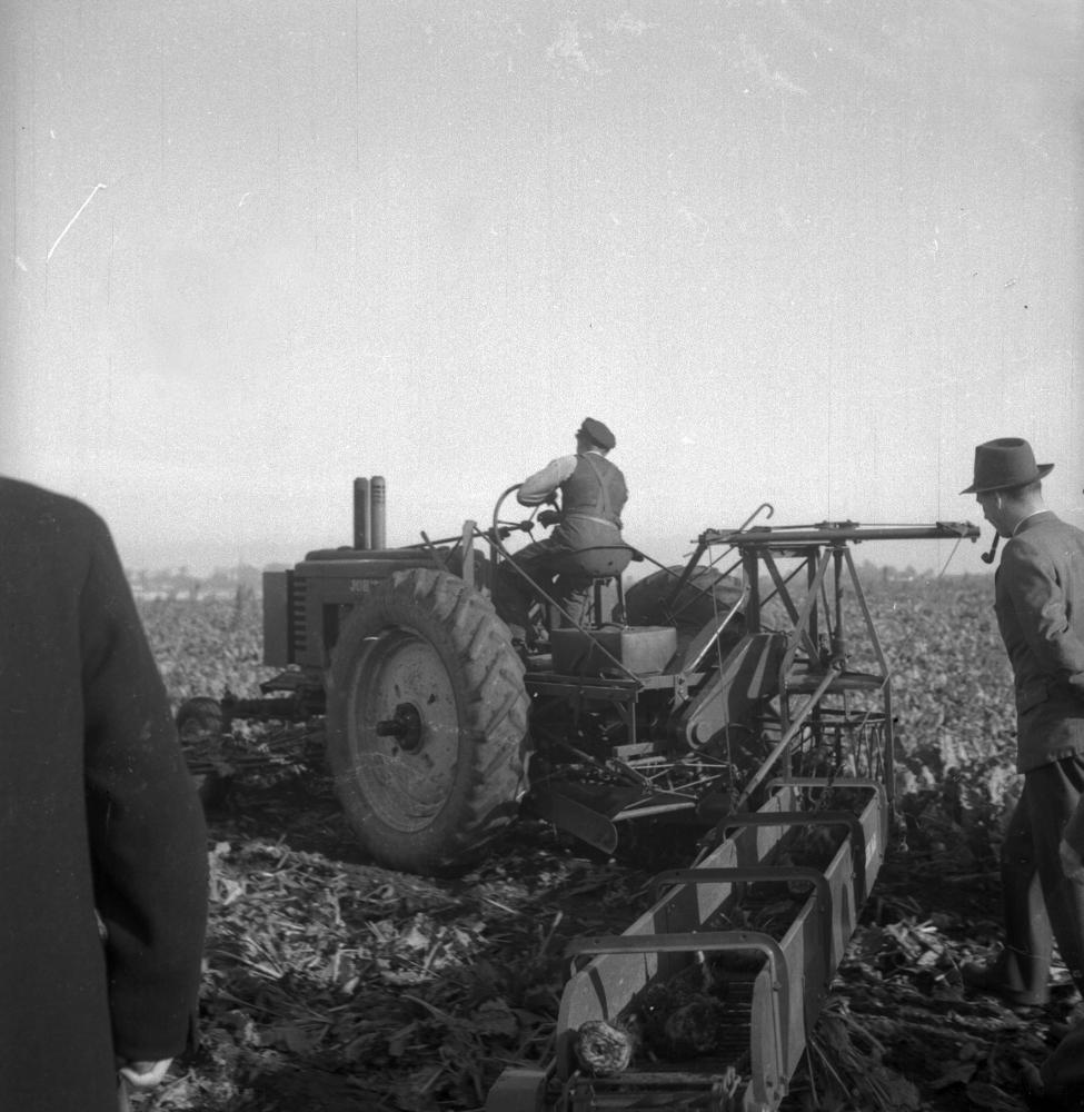 AOL 001082 :: betodling, betfält, betplockningsmaskin, arbeta, arbete, traktor, betplockare, jordbruk, betkampanj, män