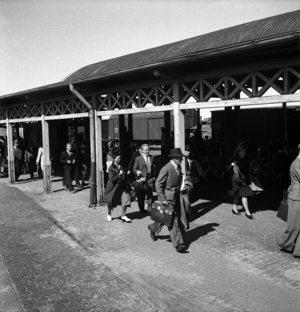 Danskinvasion i Malmö. Danskar kommer till Sverige för att handla. Malmö Centralstation.