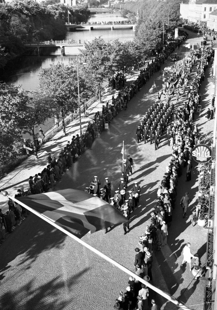 Svenska Flaggans dag firas i Malmö, på väg till Idrottsplatsen.