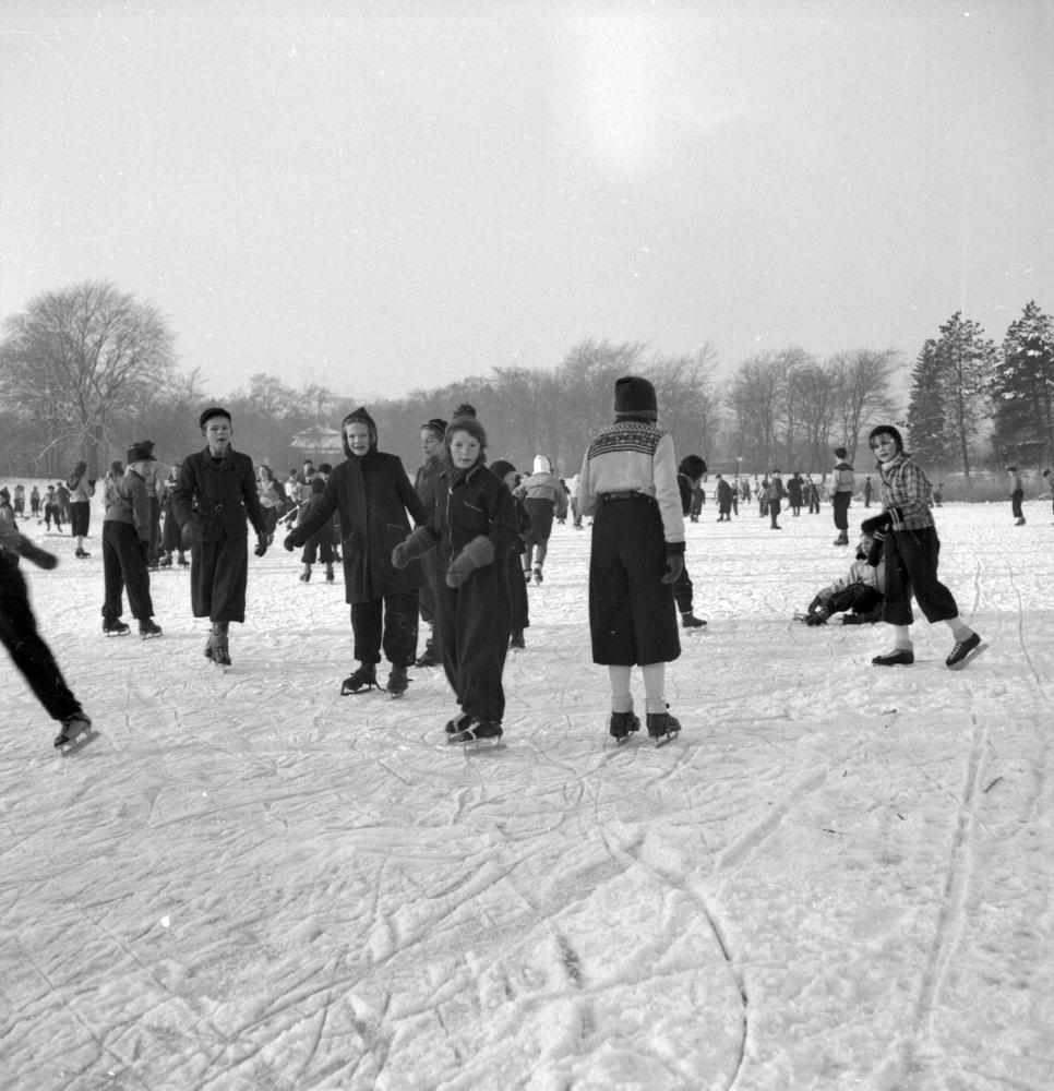 Vinter i Malmö, skridskoåkning i Hästhagen, Malmö slottspark.