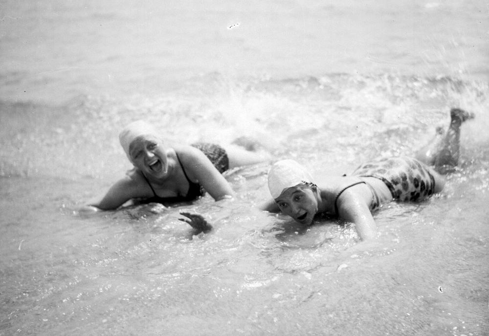 Badsommar i Skåne, 1940-talet. Två vänninnor semestrar tillsammans.