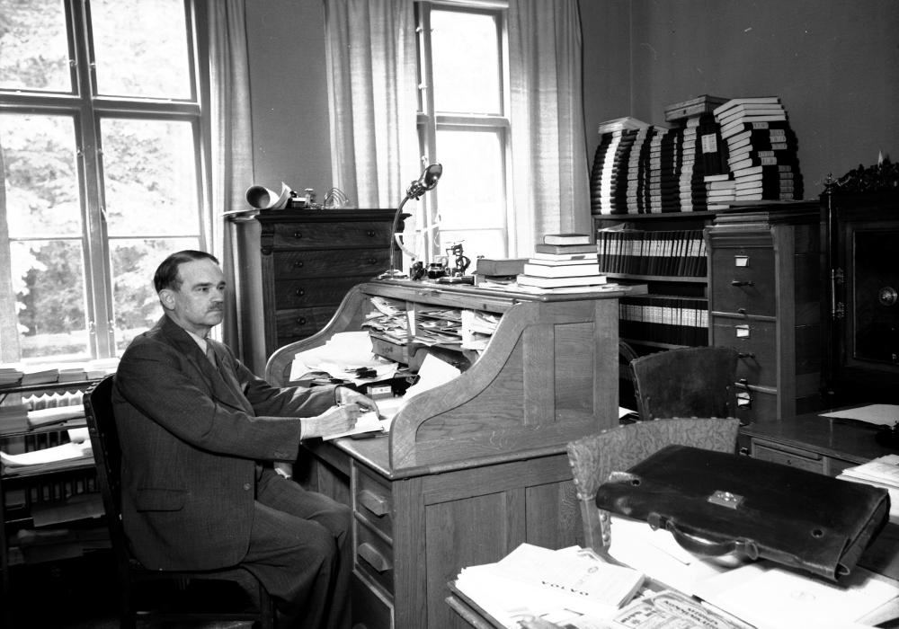 Friherre Arvid de Geer vid skrivbord, Hanaskogs slott.