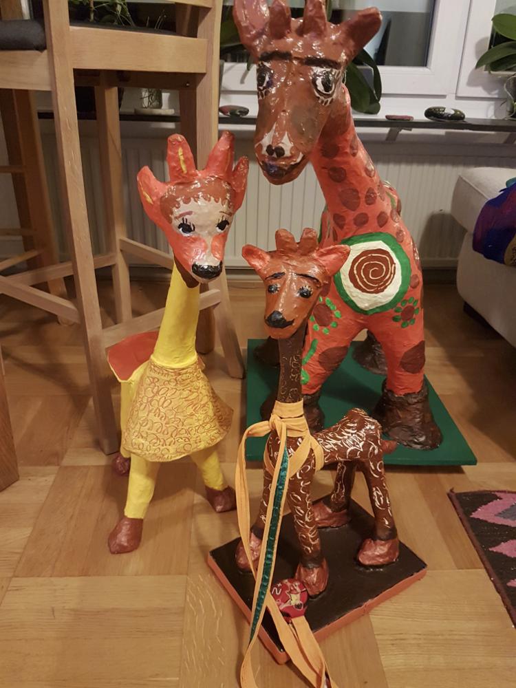 giraffer; kontor; papier maché; corona; arbeta hemma; covid-19; arbete; djur; hemmakontor; pandemi