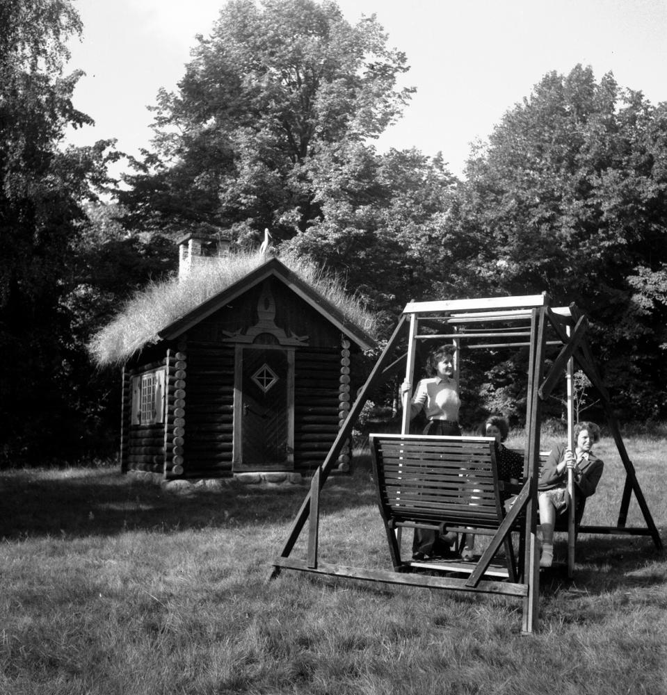 Kulla Gunnarstorp slott, kvinnor i trädgården.