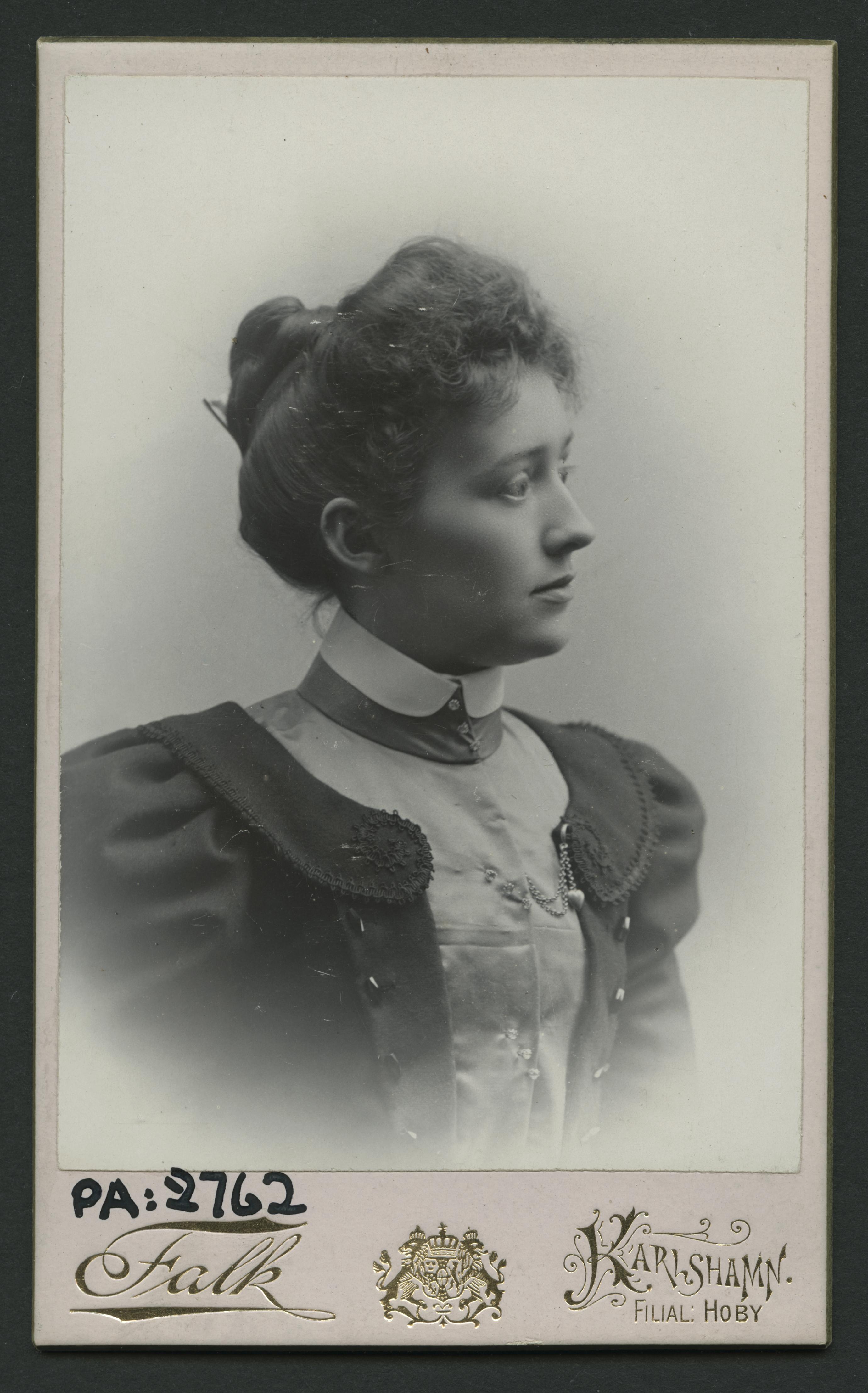 Visitkortsfotografi. Porträtt av okänd kvinna.