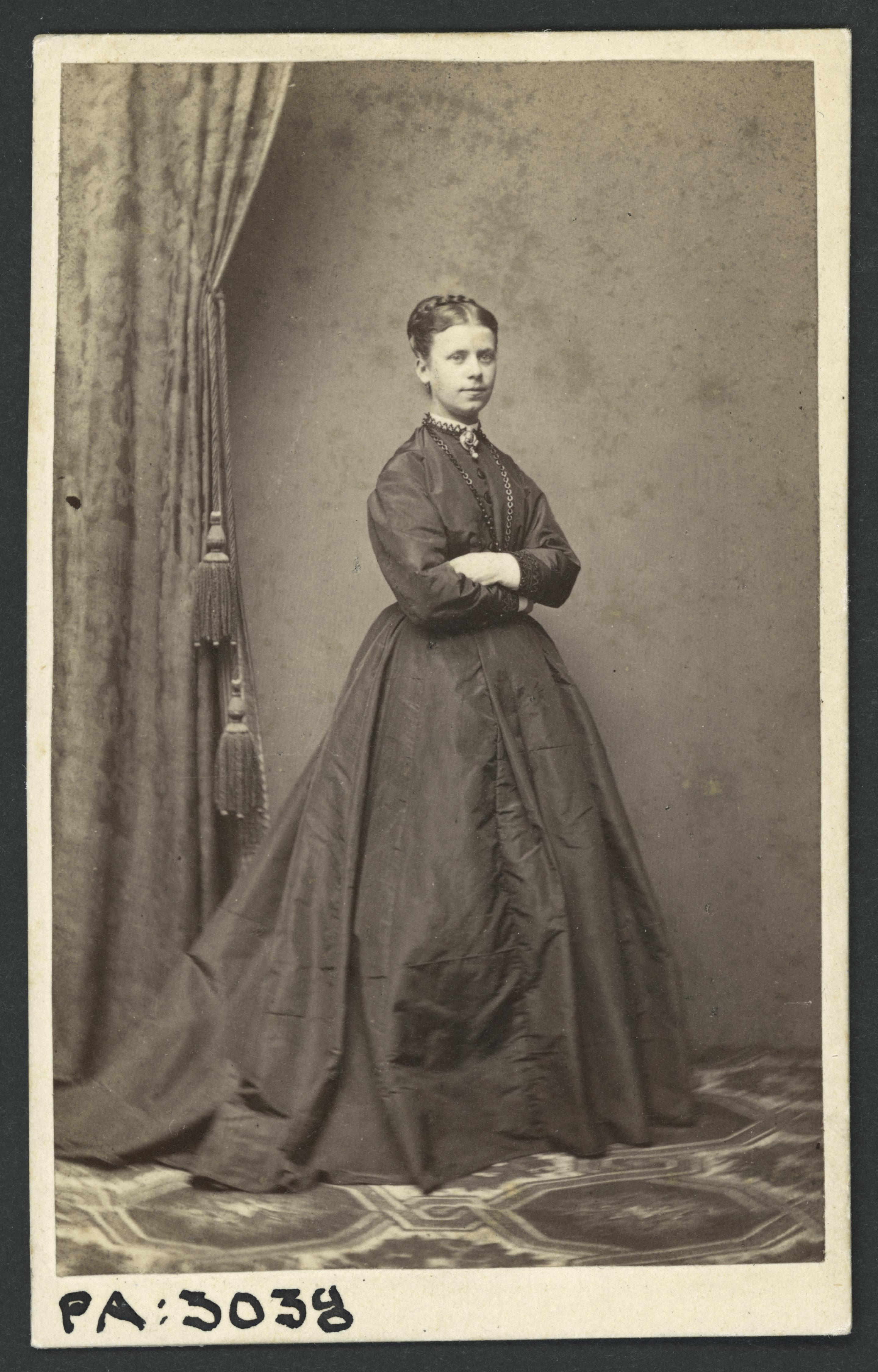 PA 003038 :: kvinna, draperi, tofsar, klänning
