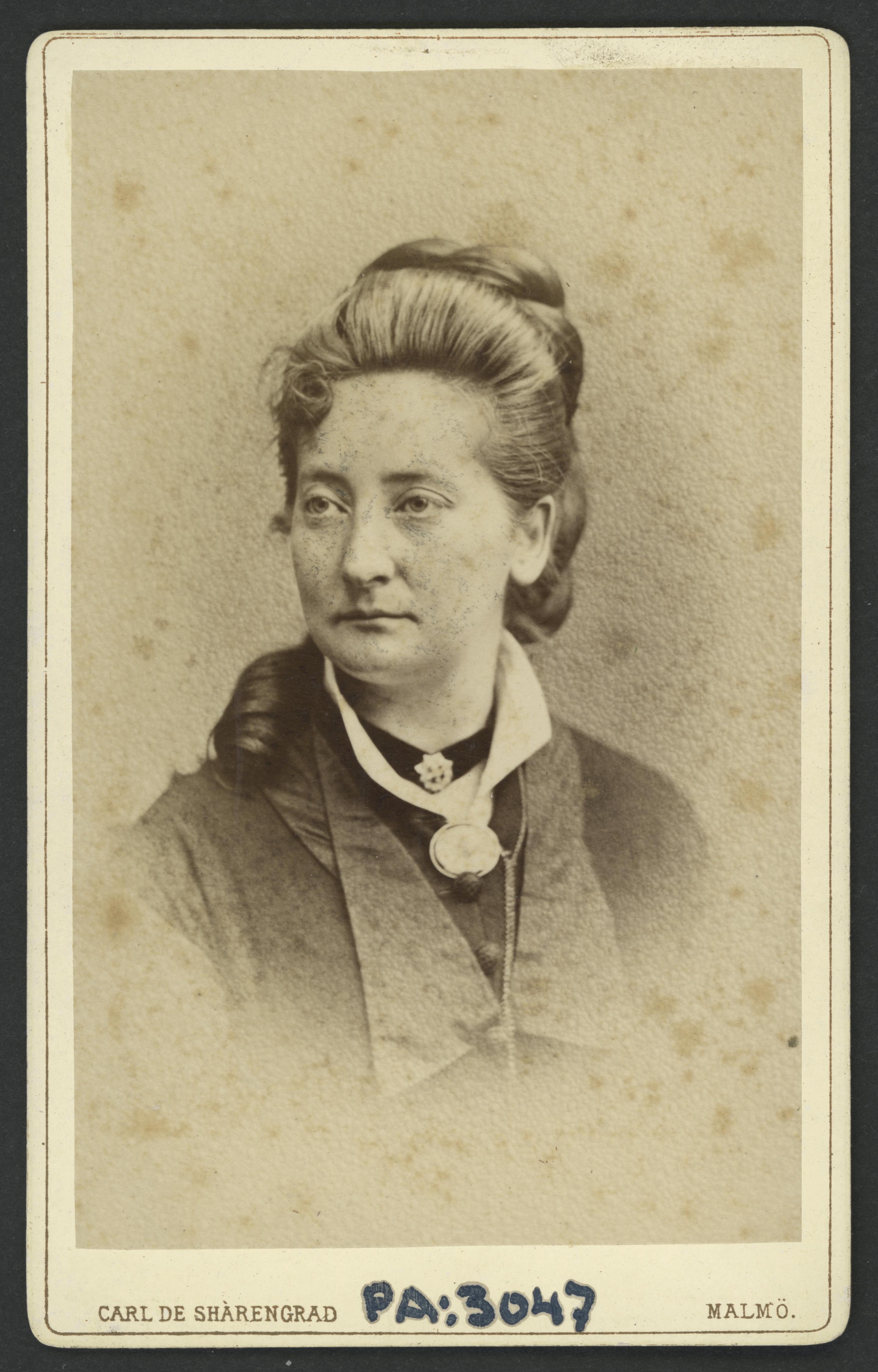 Visitkortsfotografi. Porträtt av Fanny Lindahl, född Nordström.