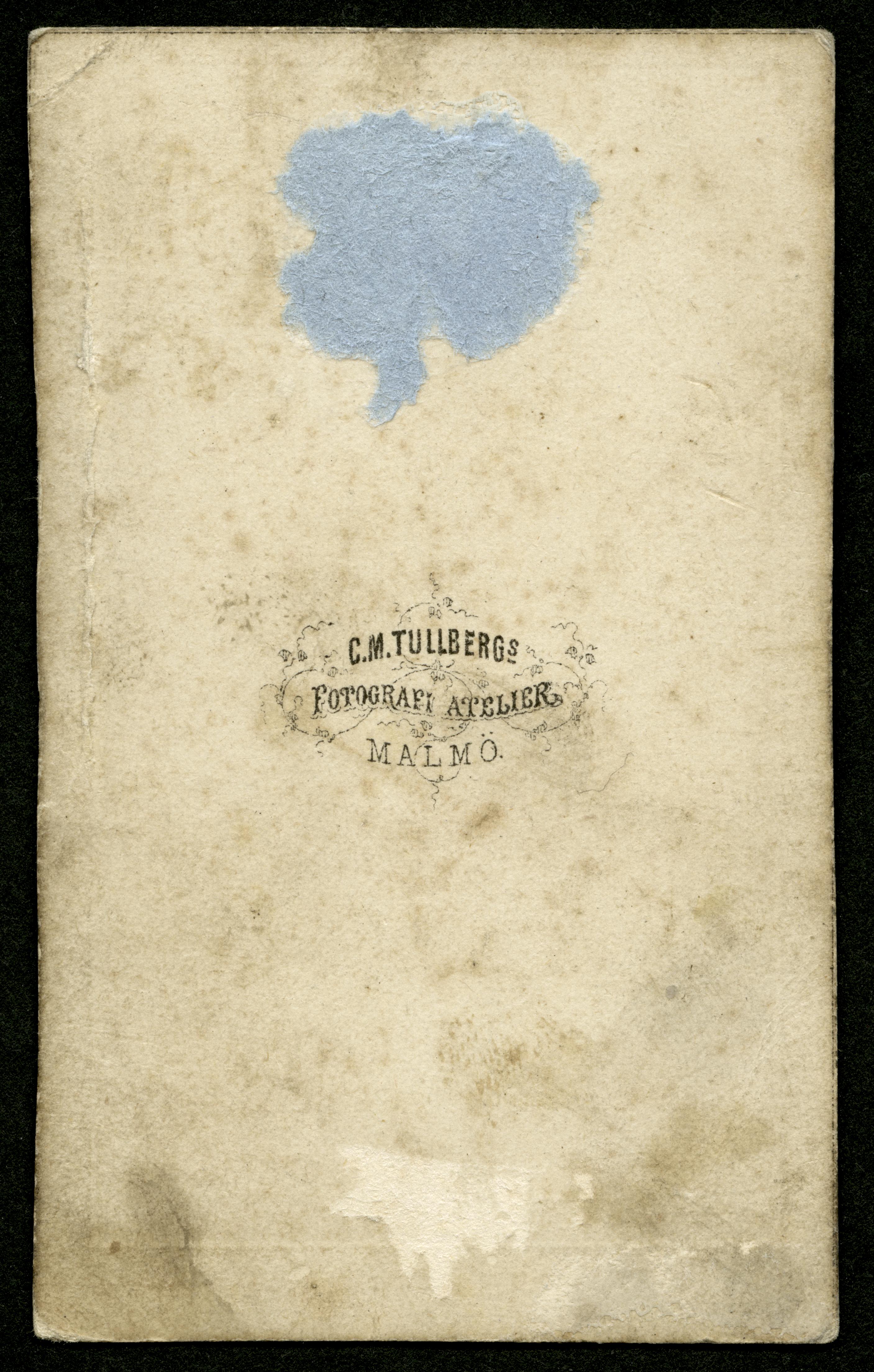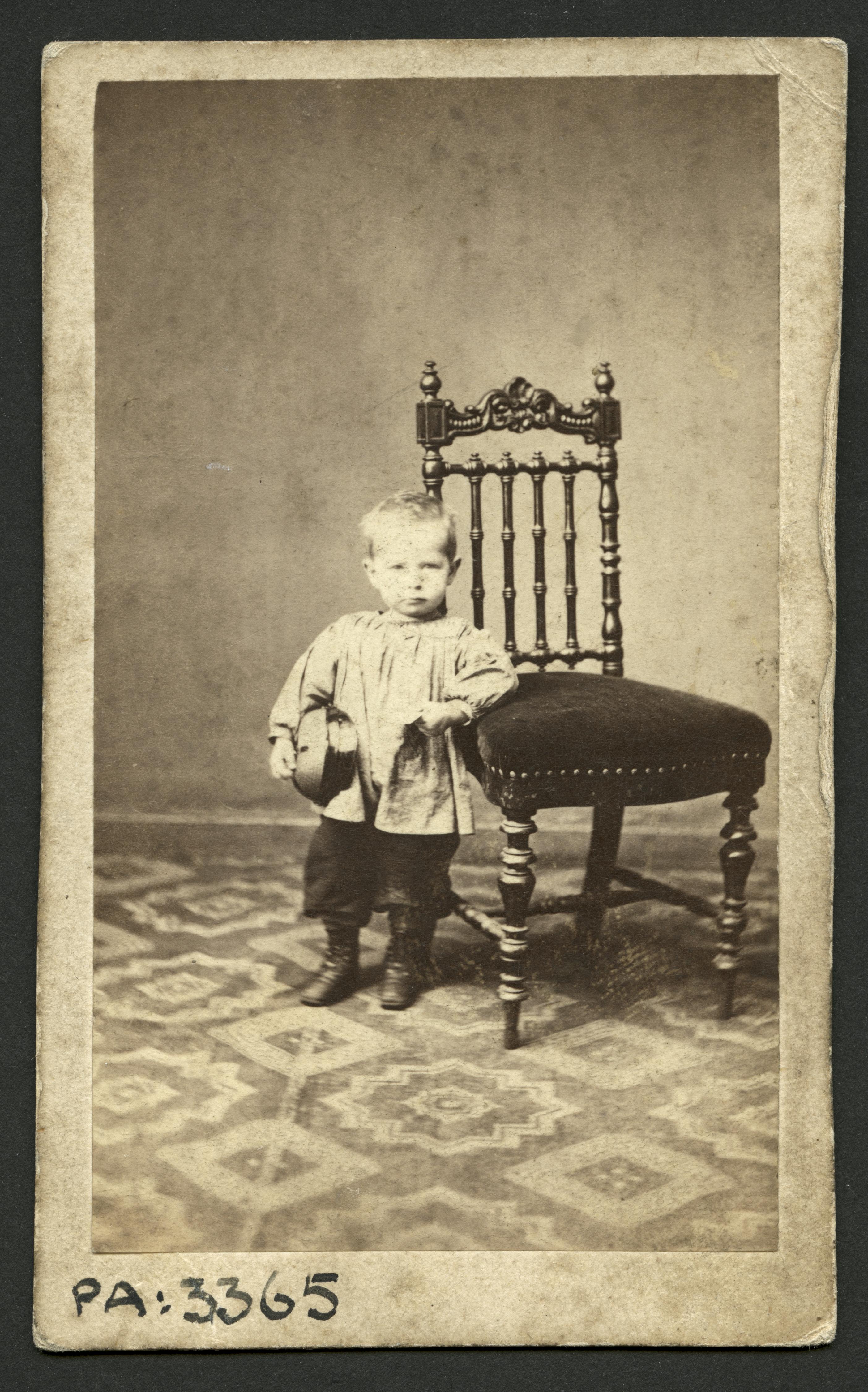 Visitkortsfotografi. Porträtt av okänd pojke vid stol.