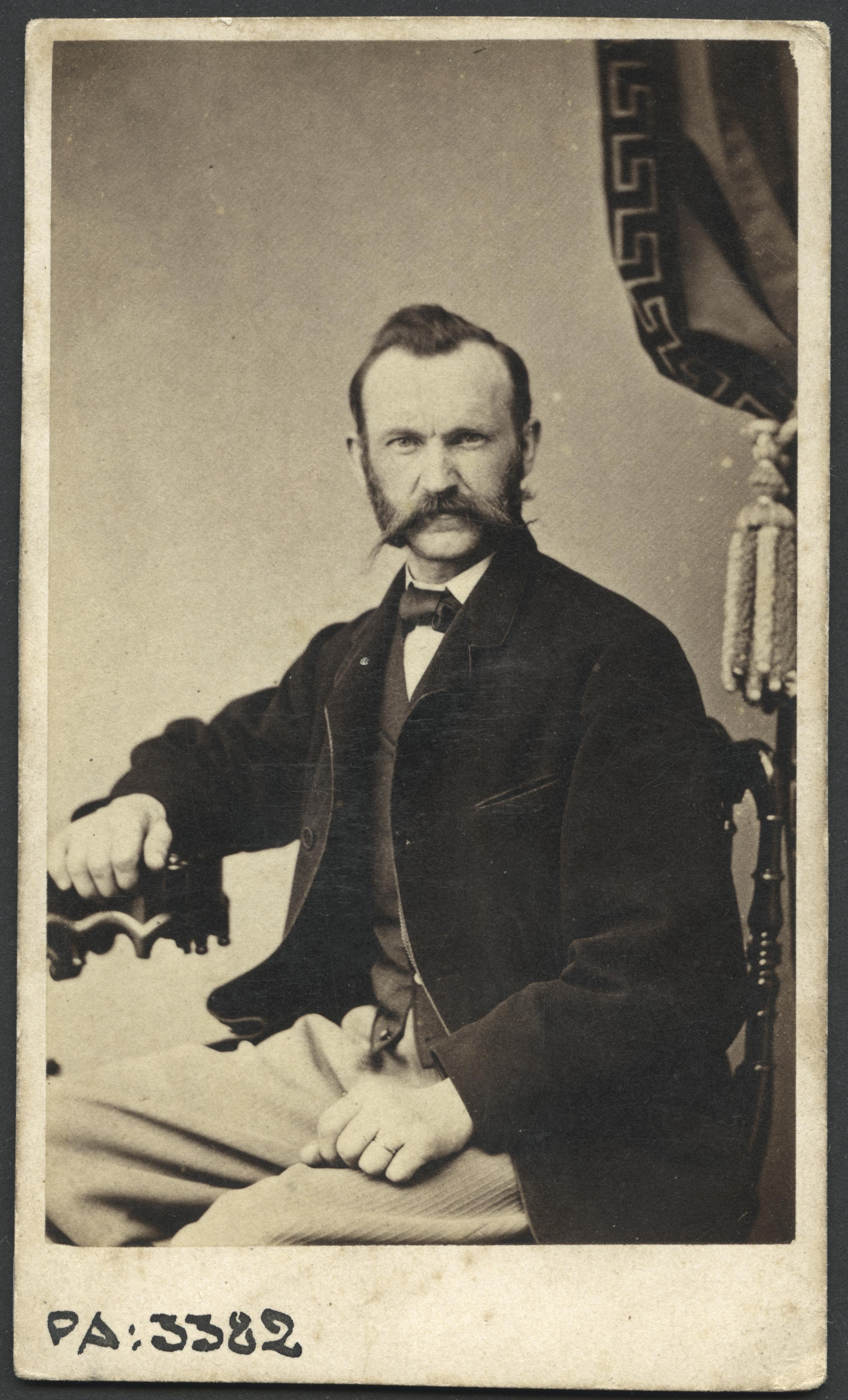 PA 003382 :: man, bord, stol, draperi, tofsar