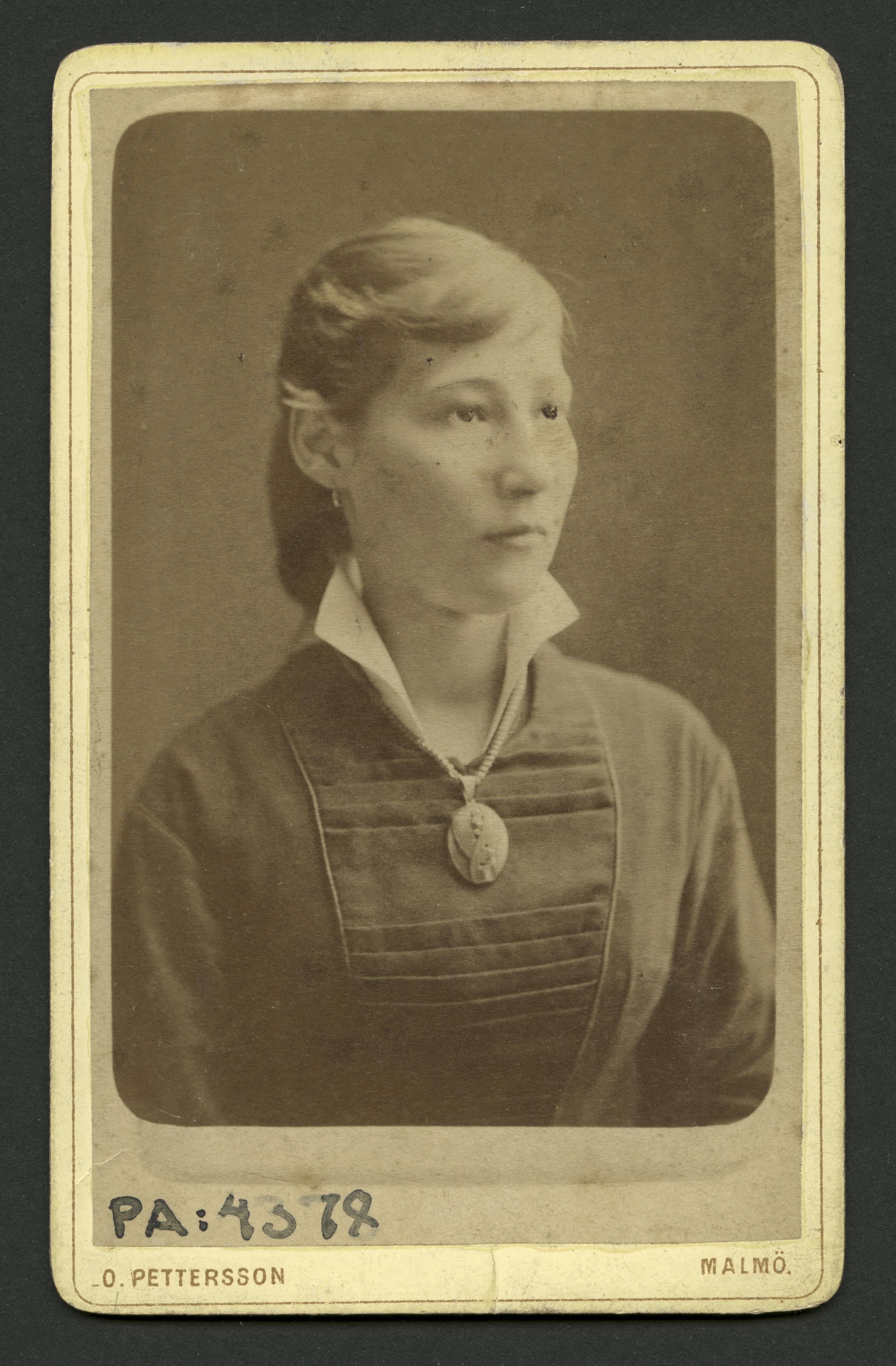 Visitkortsfotografi. Porträtt av okänd kvinna.