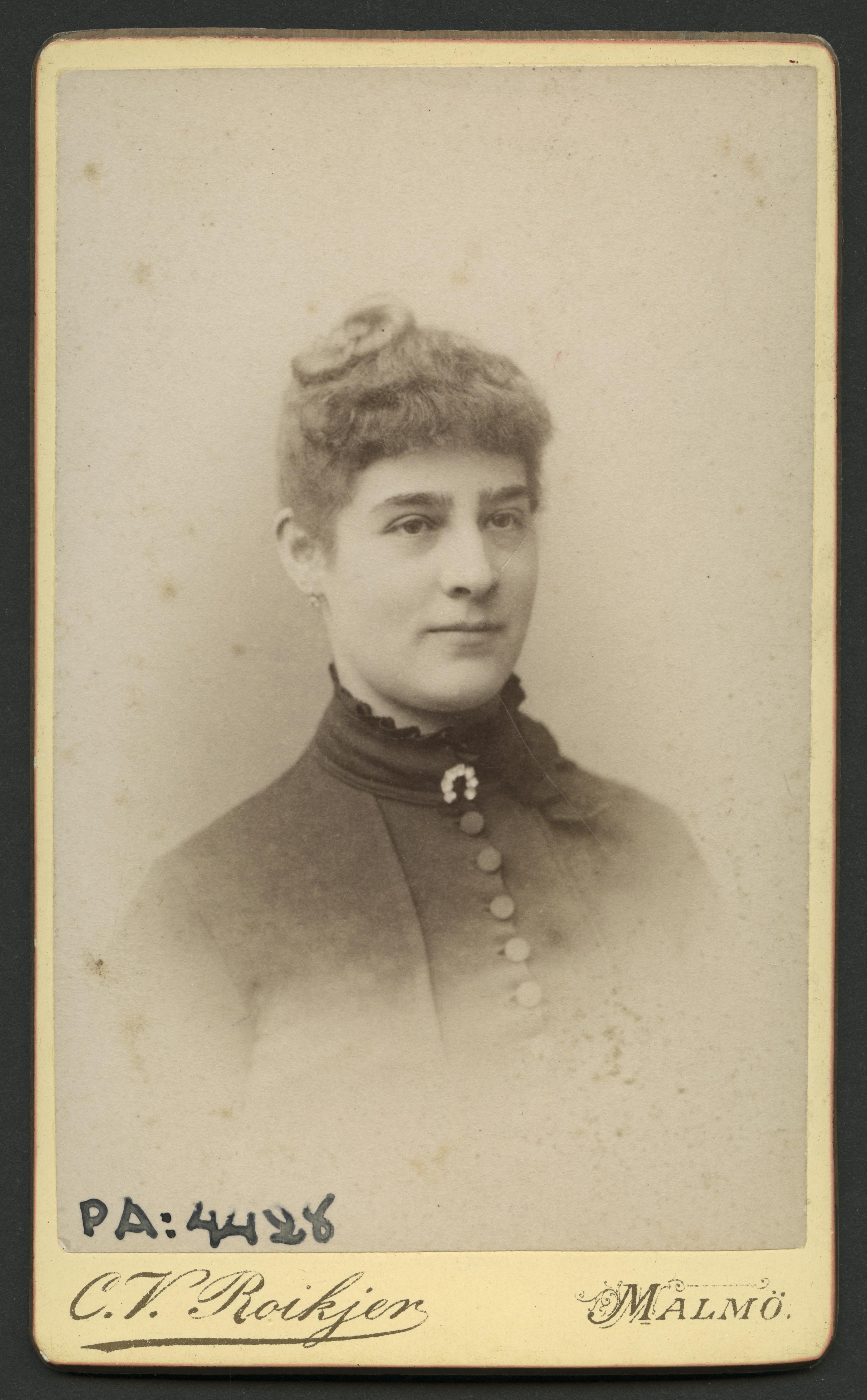 Visitkortsfotografi. Porträtt av okänd kvinna.