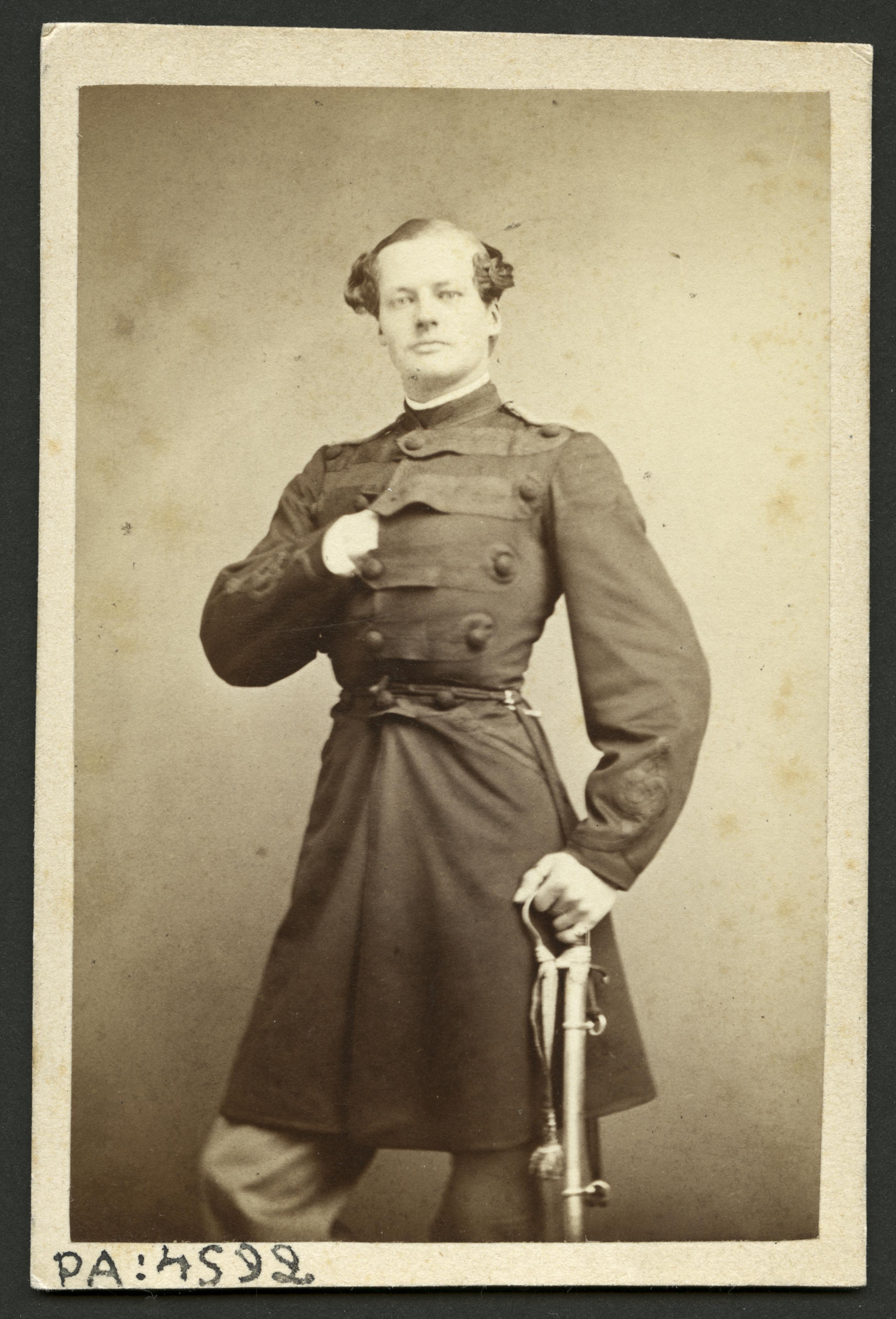 Visitkortsfotografi. Porträtt av okänd man i militäruniform.
