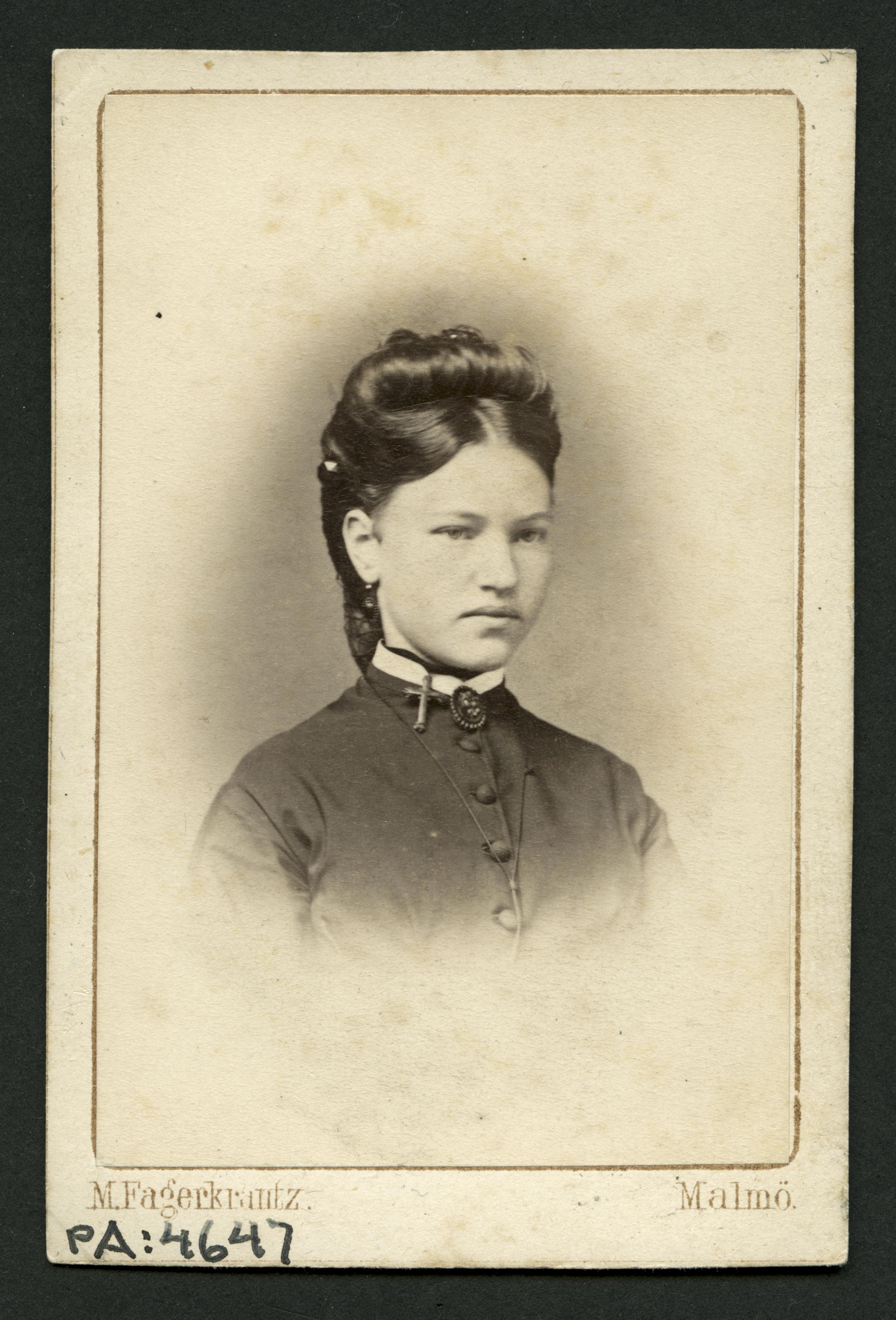 Visitkortsfotografi. Porträtt av okänd kvinna.