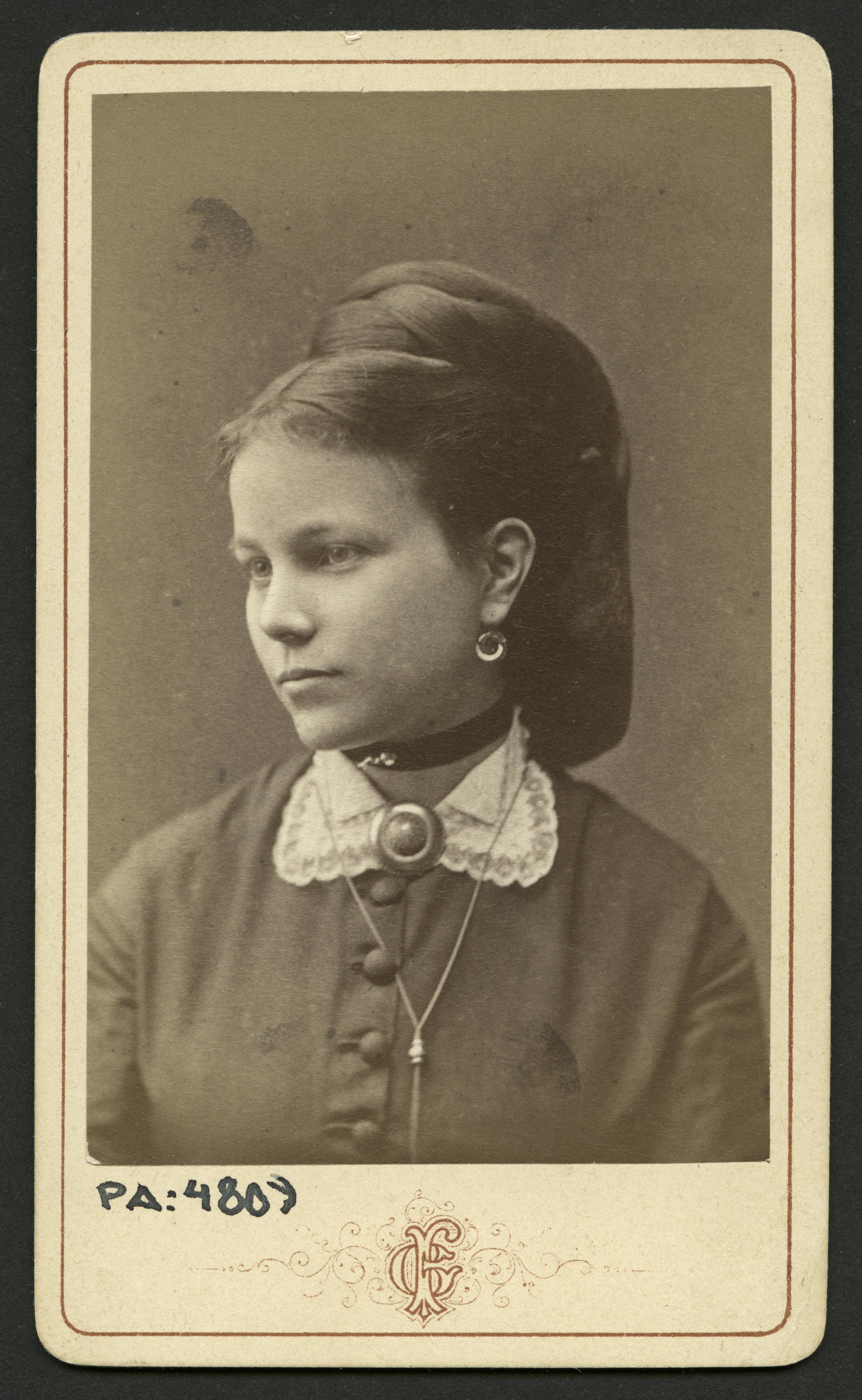 Visitkortsfotografi. Porträtt av okänd kvinna.