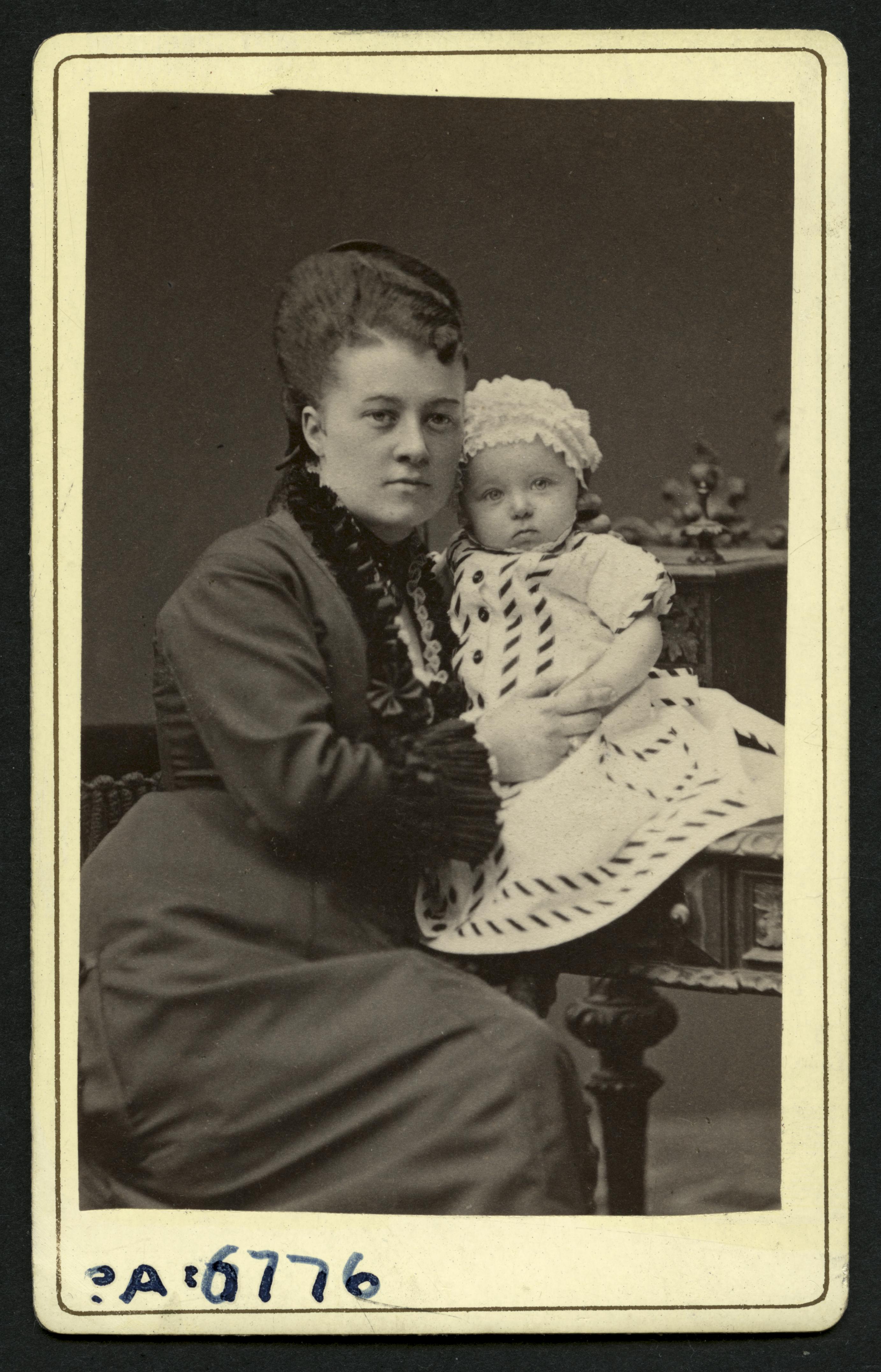 Visitkortsfotografi. Porträtt av okänd kvinna med sitt barn.
