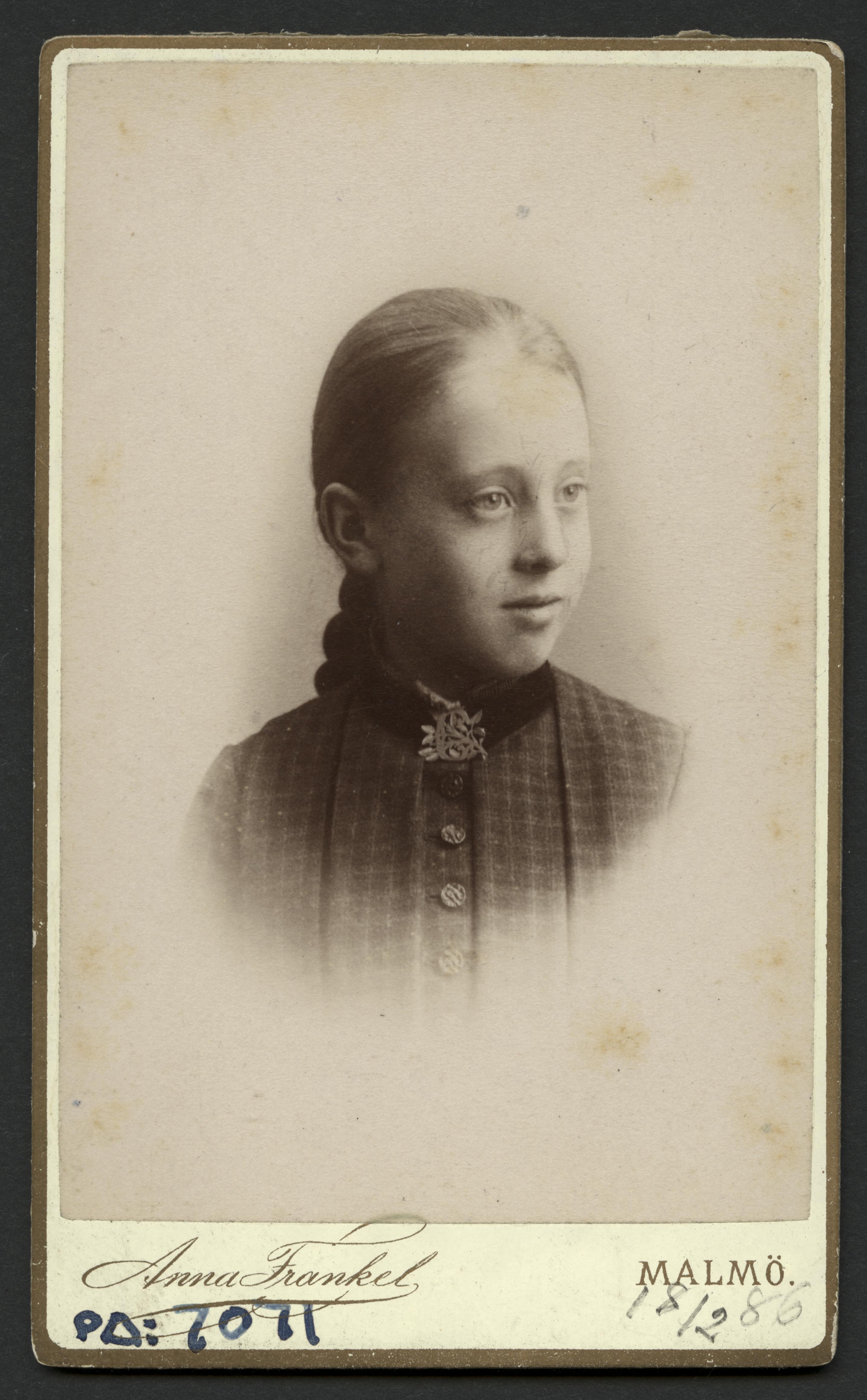 Visitkortsfotografi. Porträtt av okänd ung kvinna.