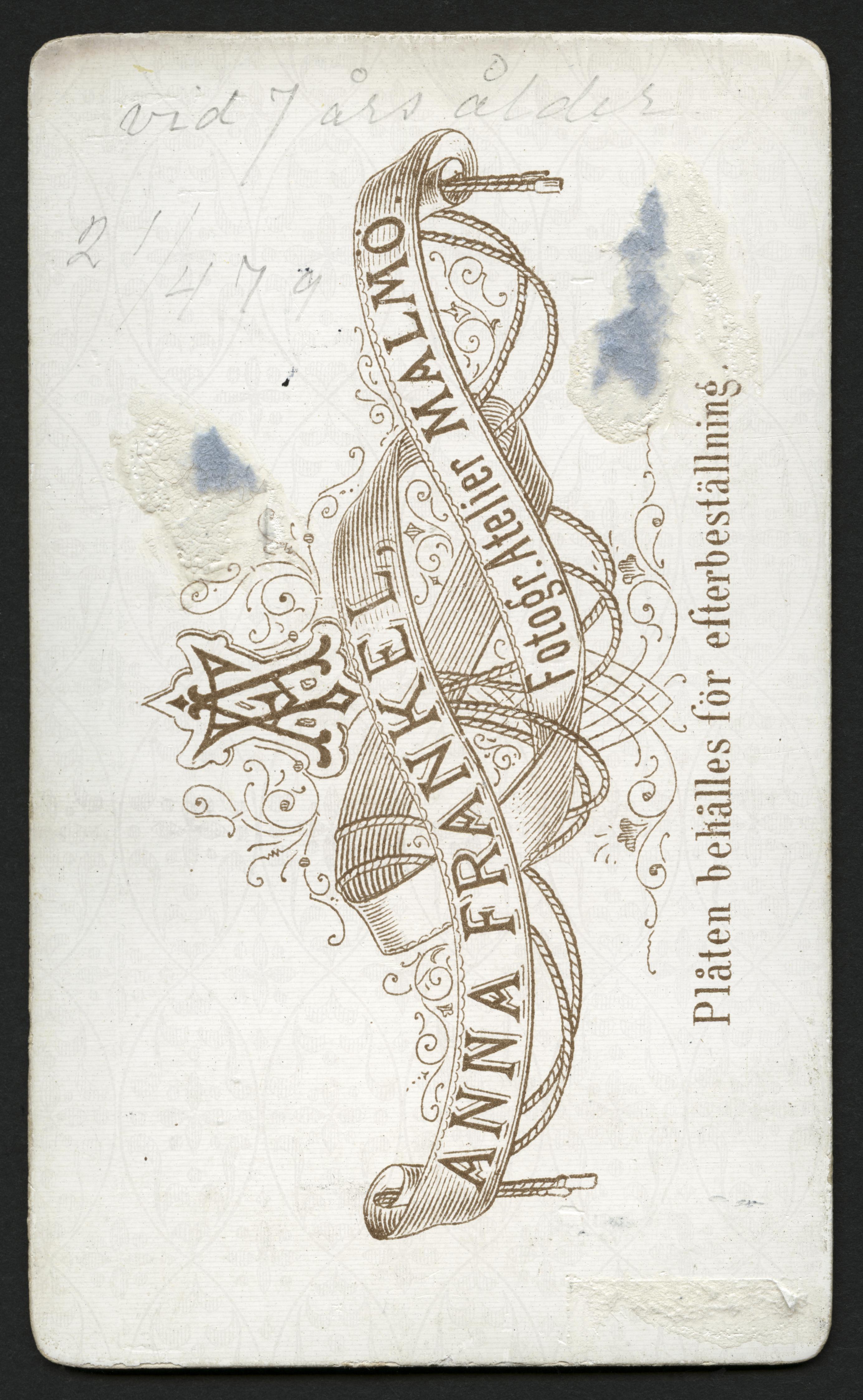 Visitkortsfotografi. Porträtt av okänd pojke.