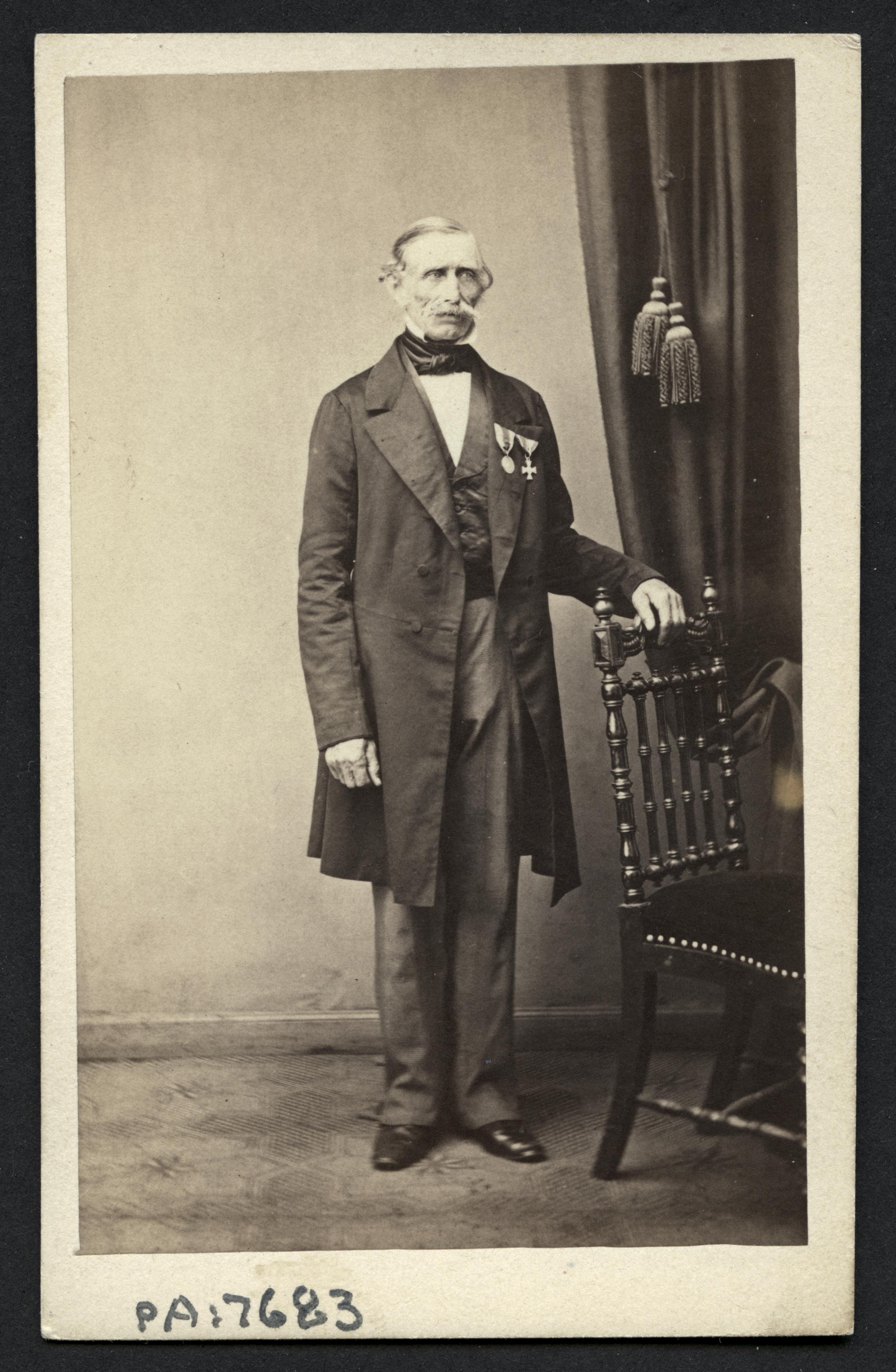 PA 007683 :: man, ordenstecken, stol, draperi, tofsar