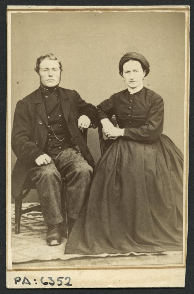 Visitkortsfotografi. Porträtt av okänd man och kvinna.