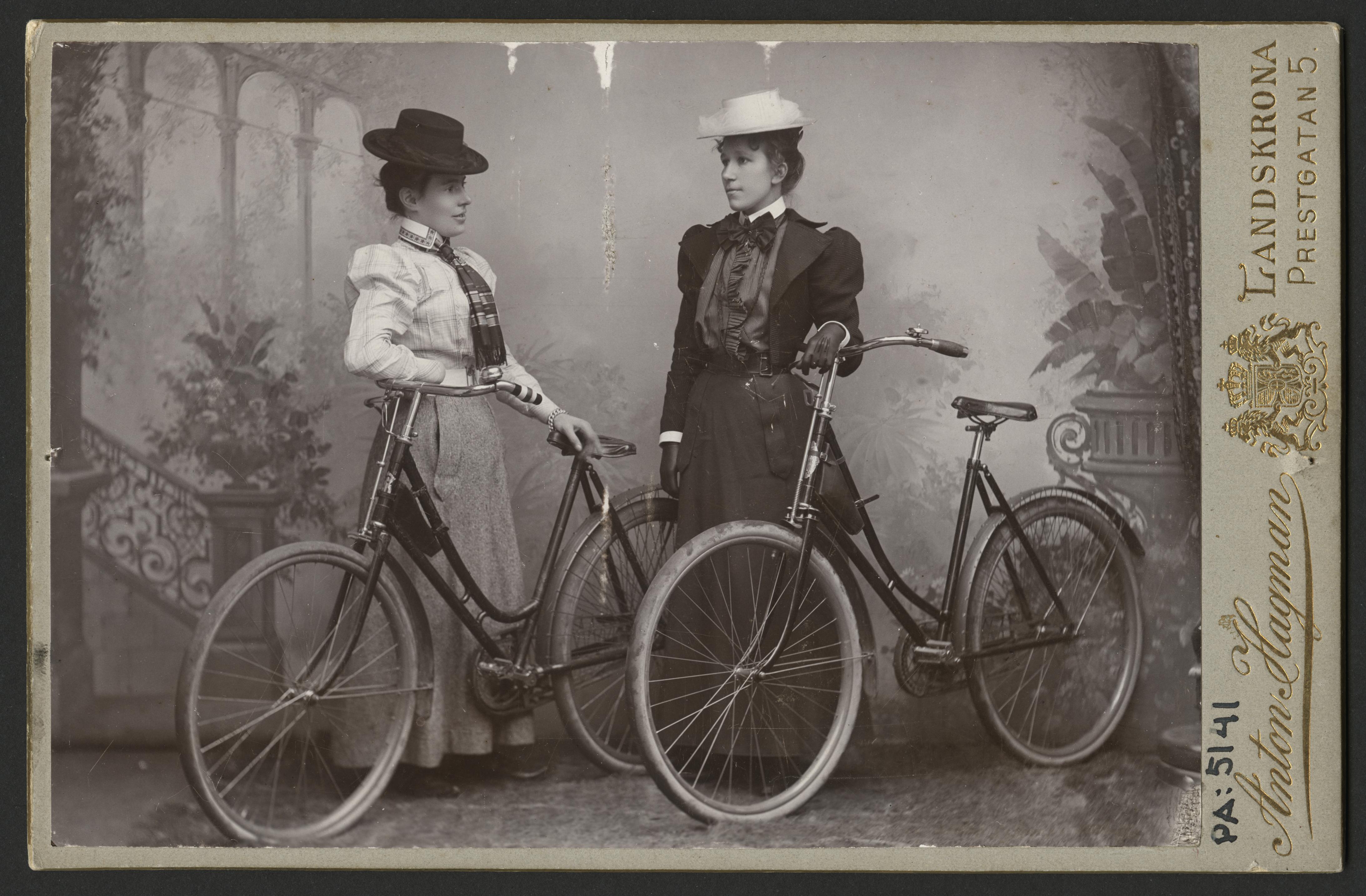 PA 005141 :: kvinnor, damhattar, klänningar, cyklar, ateljéfond