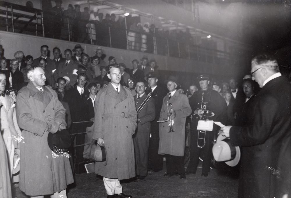 Från det högtidliga mottagandet vid färjeläget i Trelleborg.