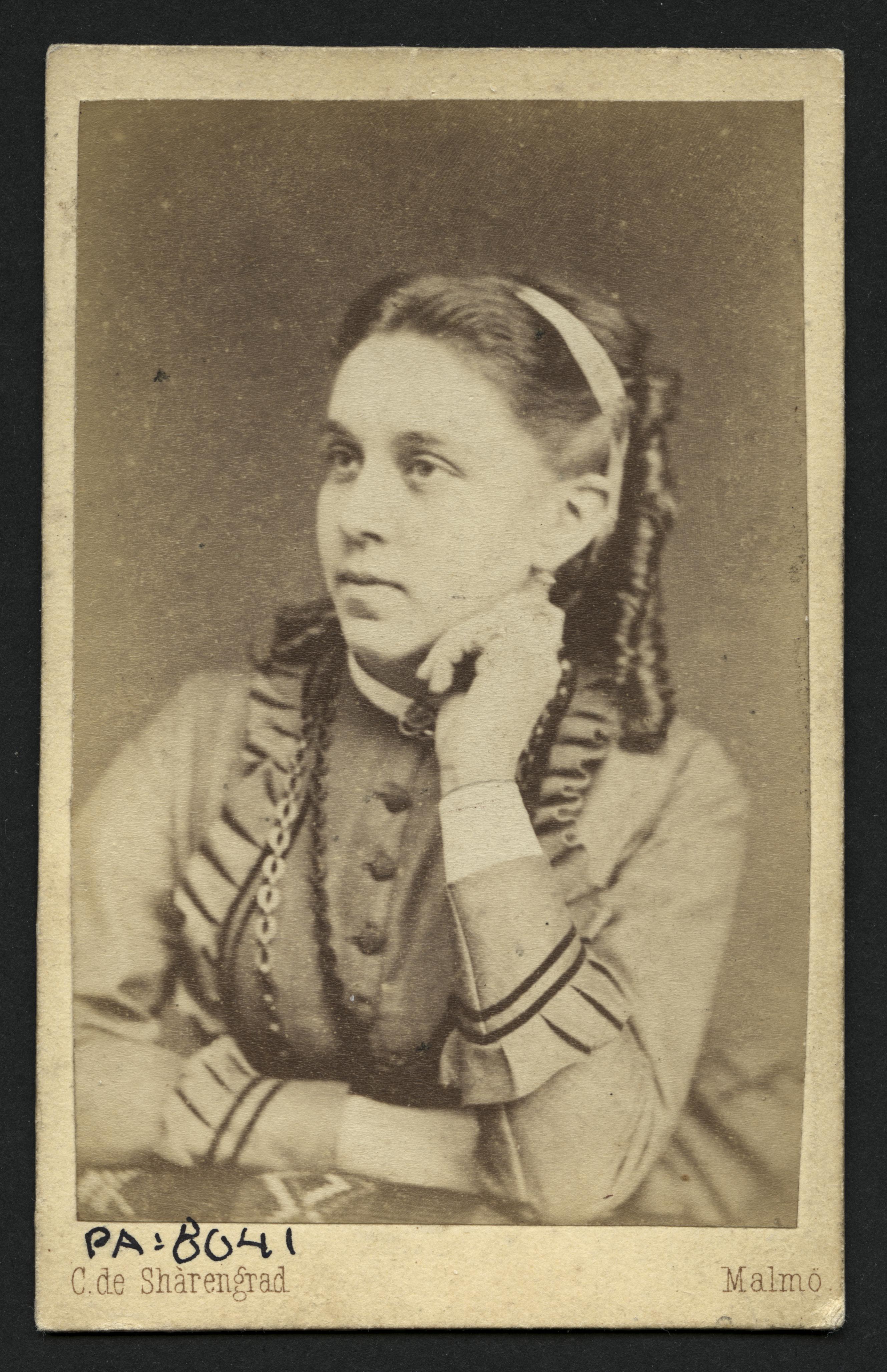 Visitkortsfotografi. Porträtt av okänd kvinna.