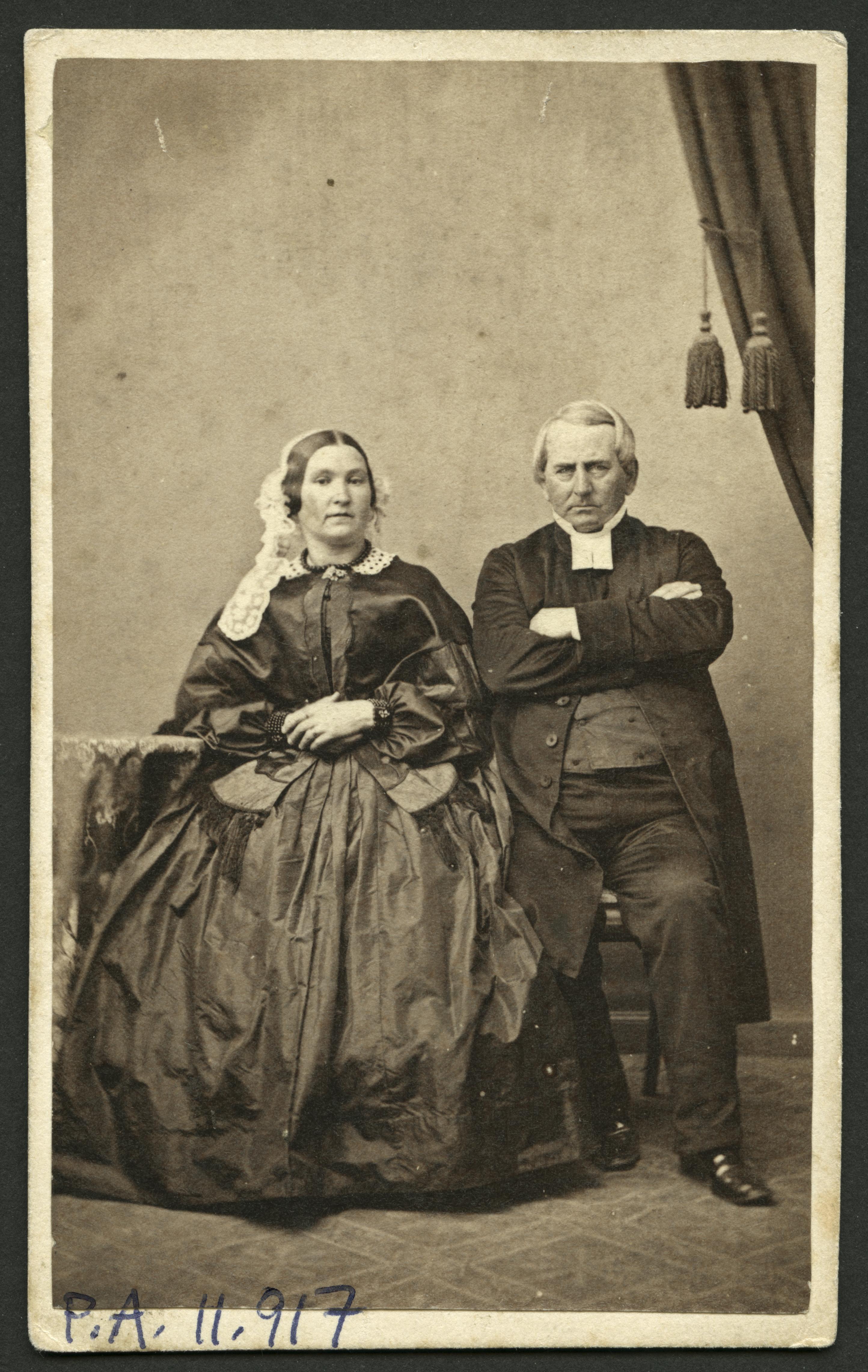 Visitkortsfotografi. Porträtt av okänd präst med fru.
