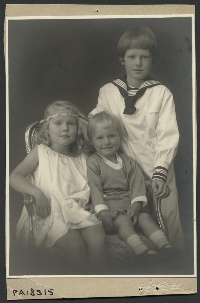 - Visitkortsfotografi. Porträtt av Ragnhild Elisabet (1896-1928) och Nils Gunnar Alexander Olsson (1899-) samt deras äldste broder. Barn till Wilhelmina Sjöström (1866-1943) och målargesäll Carl Gustaf Olsson (1866-).