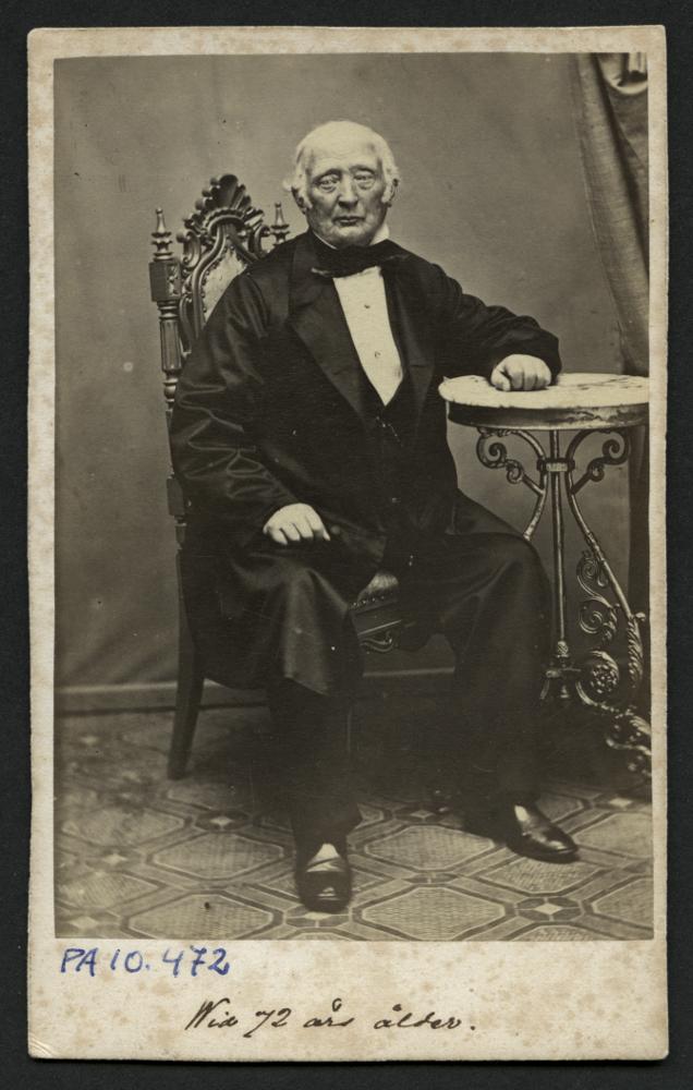 Visitkortsfotografi. Porträtt av okänd man. Handskrivet på kortet: "Wid 72 års ålder".