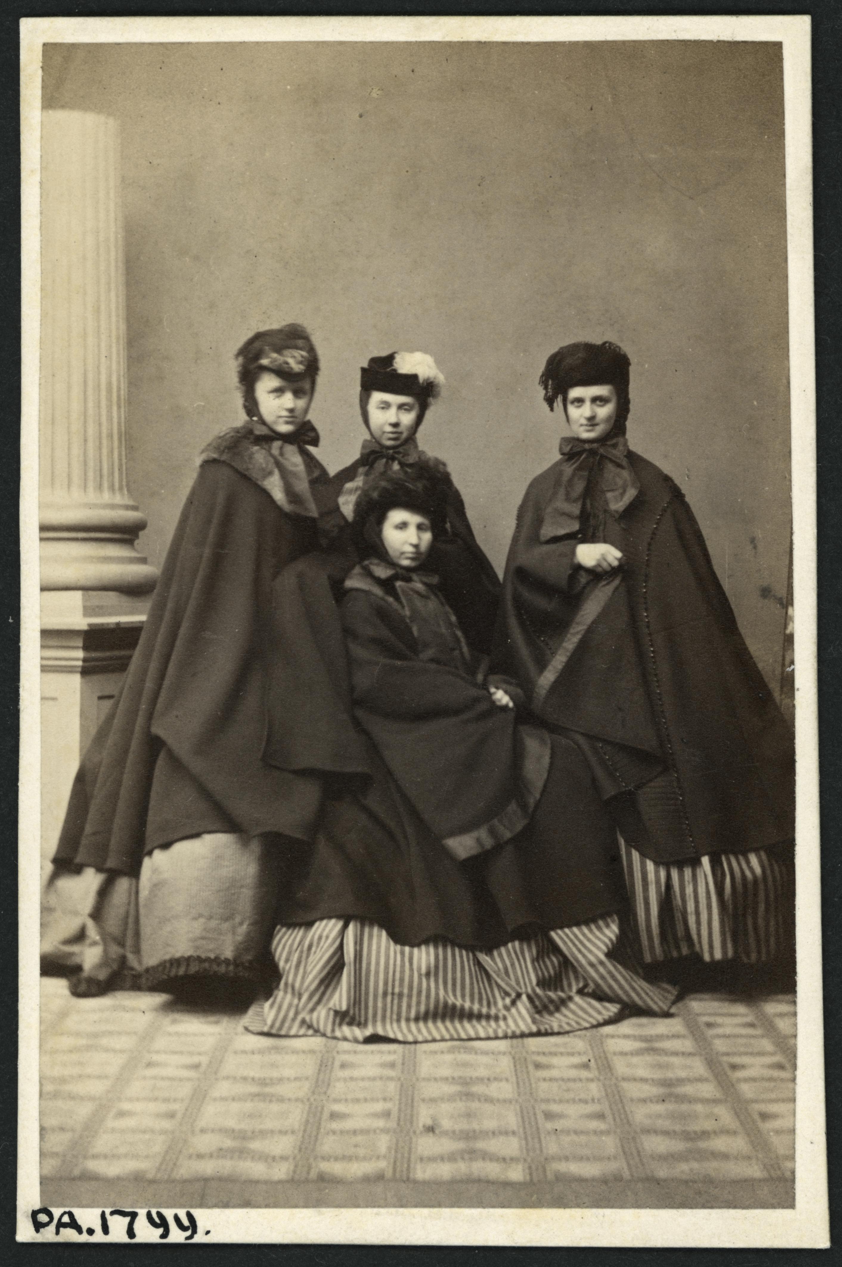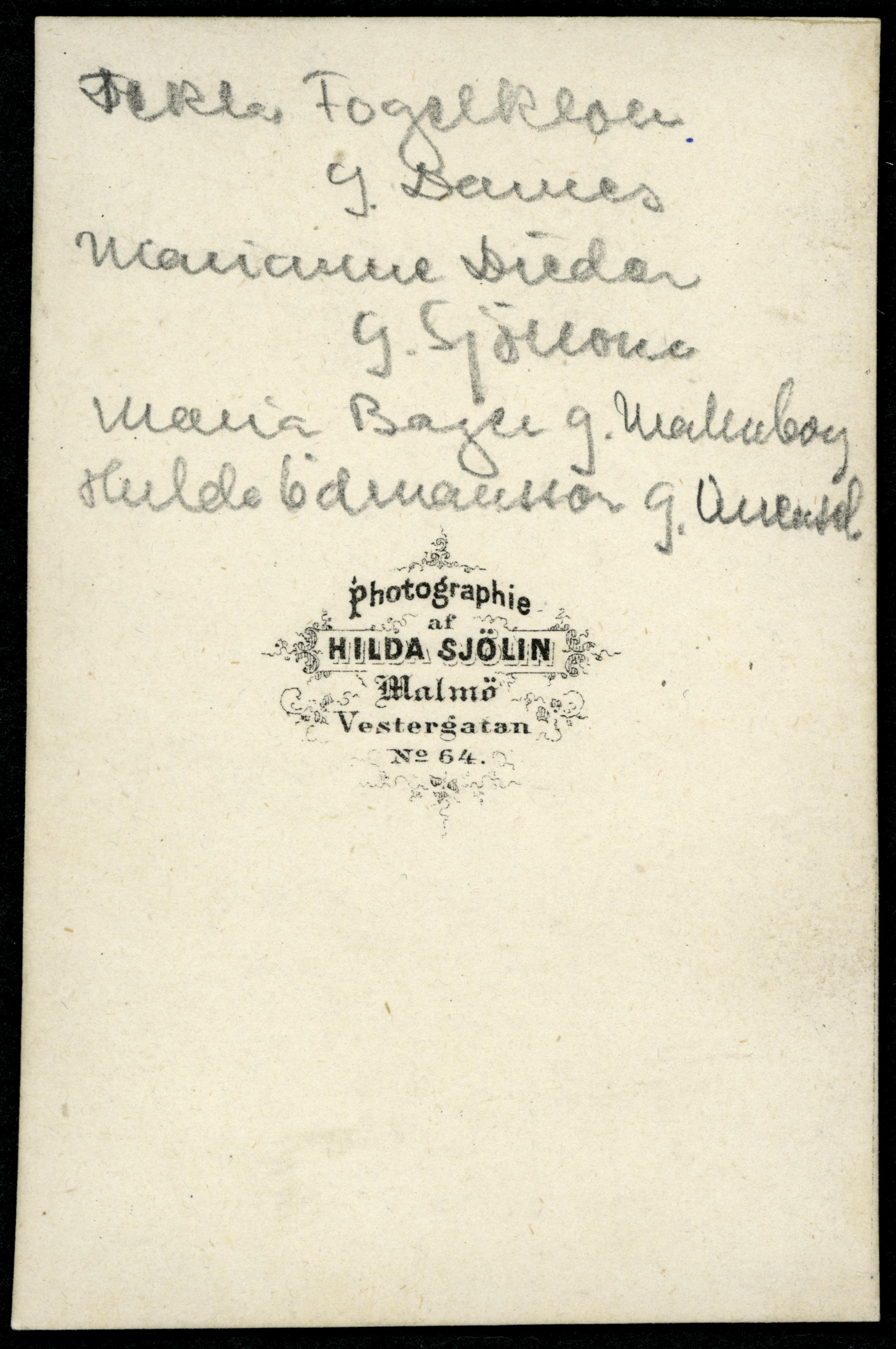Visitkortsfotografi. Grupporträtt på Thekla Fogelklou, Mariana Dieden, Maria Bager och Hulda Ödmansson.
