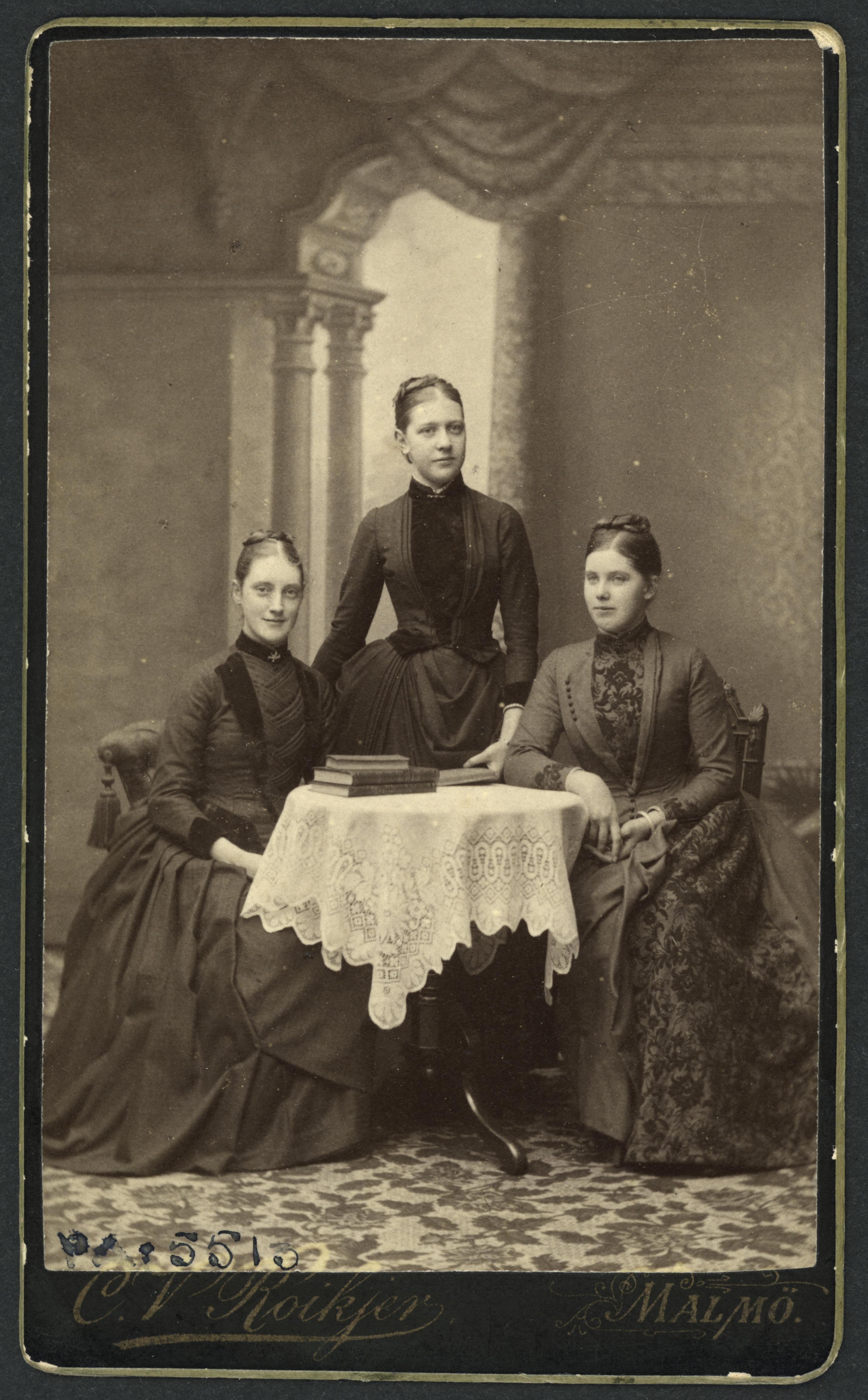 Visitkortsfotografi. Porträtt av Anna Eurenius, Molly Quensel, Gabrielle Hedman.