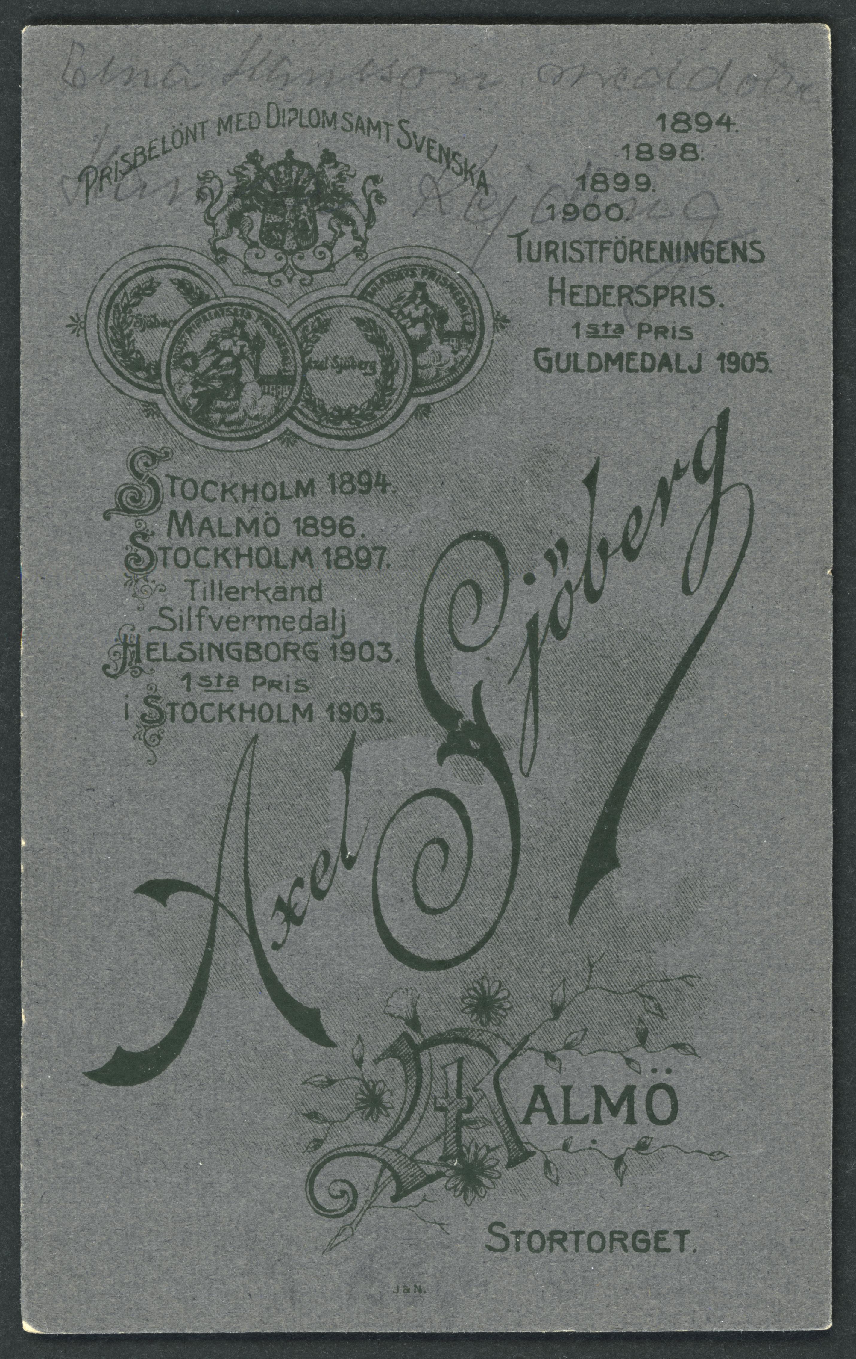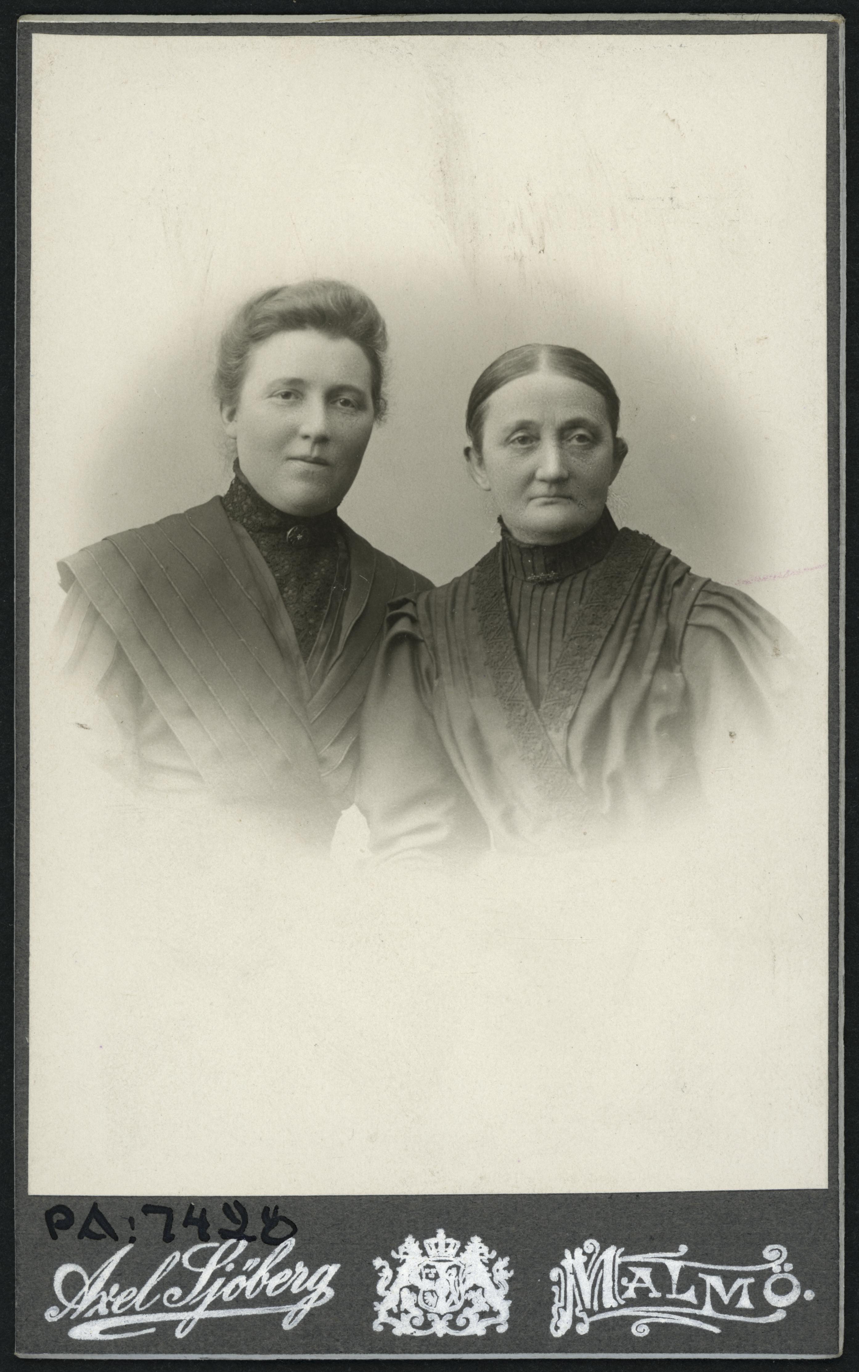 Visitkortsfotografi. Porträtt av Elna Hansson med dottern Hanna.