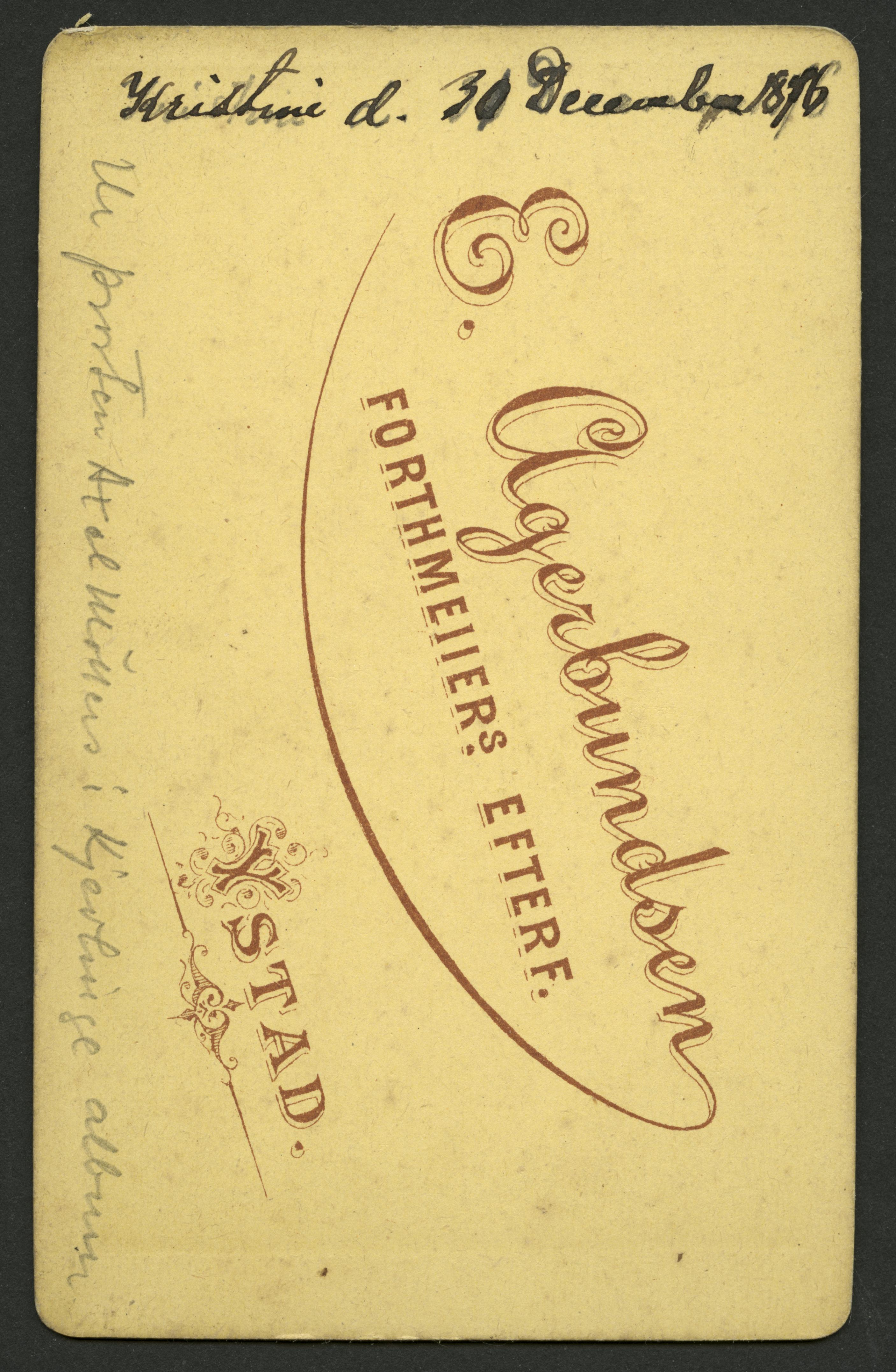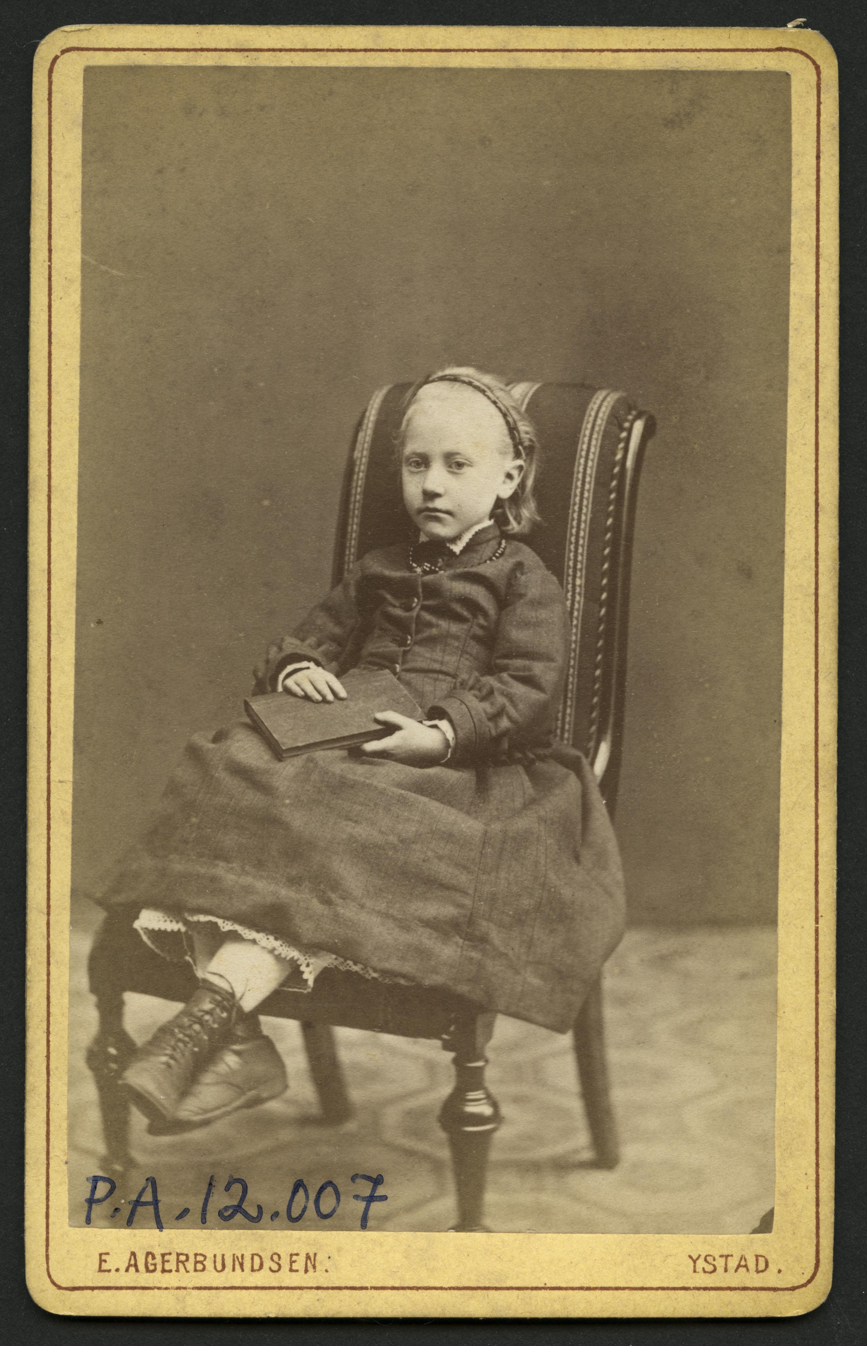 Visitkortsfotografi. Porträtt av okänd flicka, dock identifierad på kortets baksida som "Krisitna d. 30 dec.1896 /Ur prosten Axel Möllers i Keflinge album".