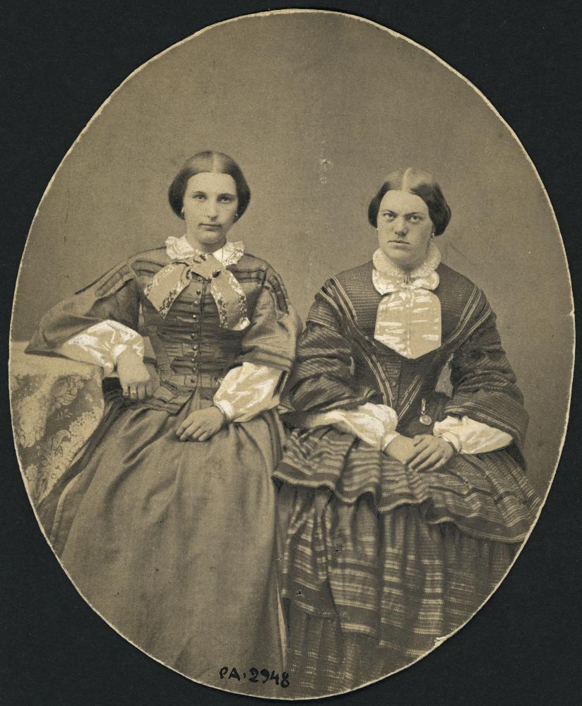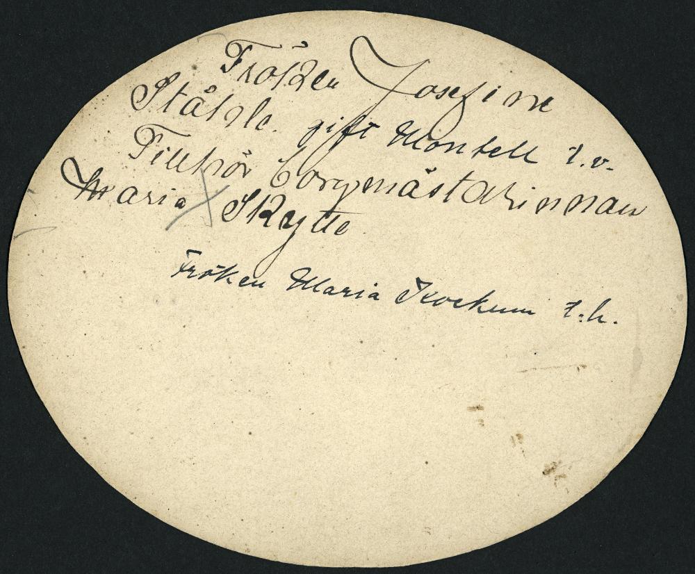 - Visitkortsfotografi. Porträtt av Josefine Montell, t.v. och Maria Kockum. Handskrivet på kortets baksida: "Fröken Josefine Ståhle, gift Montell t. v. /Tillhör borgmästarinnan Maria Skytte /Fröken Maria Kockum t. h."