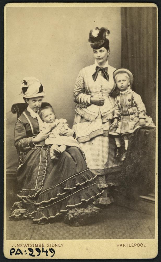 PA 002949 :: kvinnor, barn, damhattar, draperi, flicka, pojke, klänningar