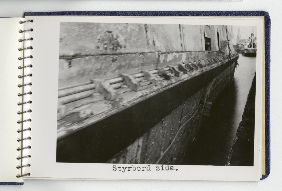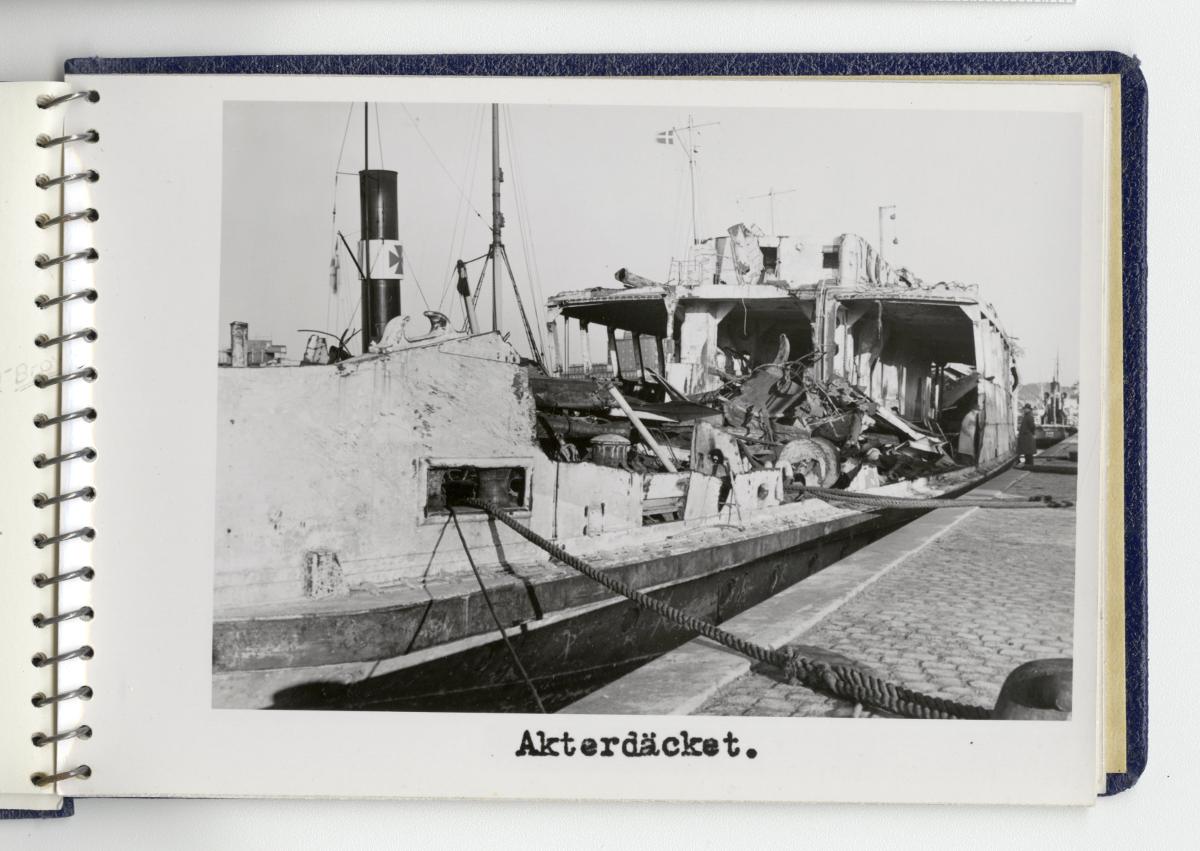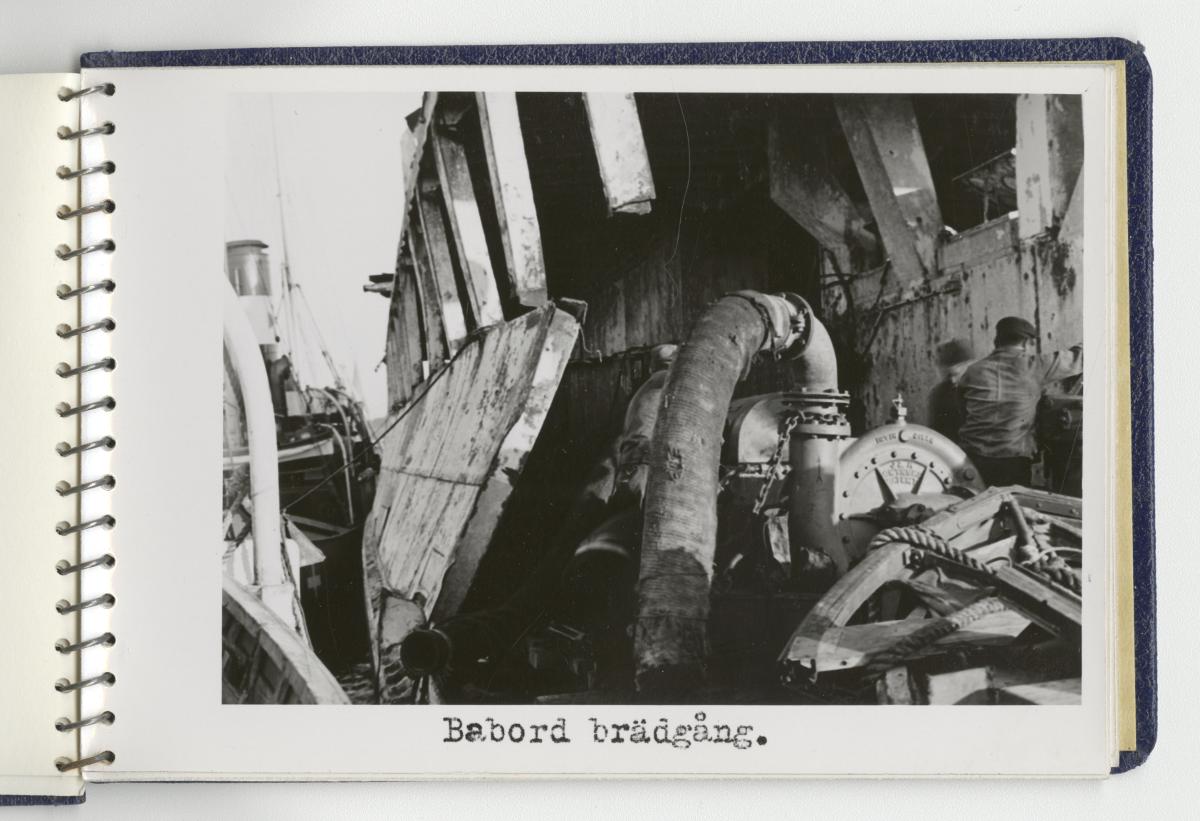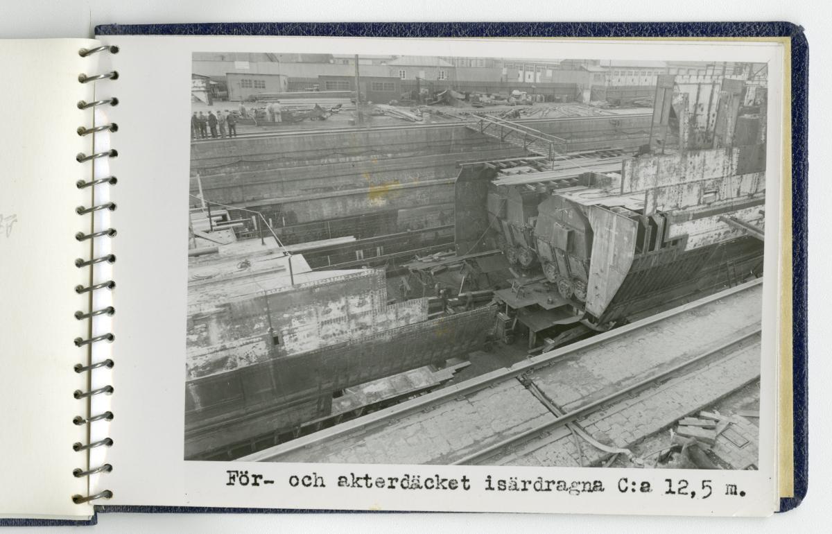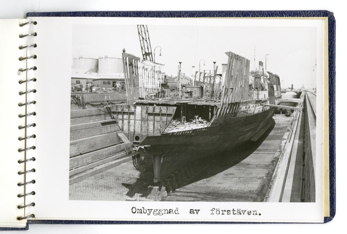 - Fotoalbum med fotografier föreställande tågfärjan Starke, dess bärgning och förlängning år 1943. Albumet är spiralbundet och pärmarna av blå klot. På frampärmen Statens Järnvägars symbol med det krönta bevingade hjulet, texten Tågfärjan / Starke och Kockums firmasymbol, d v s den krönta gripen och texten Kockums / Malmö.