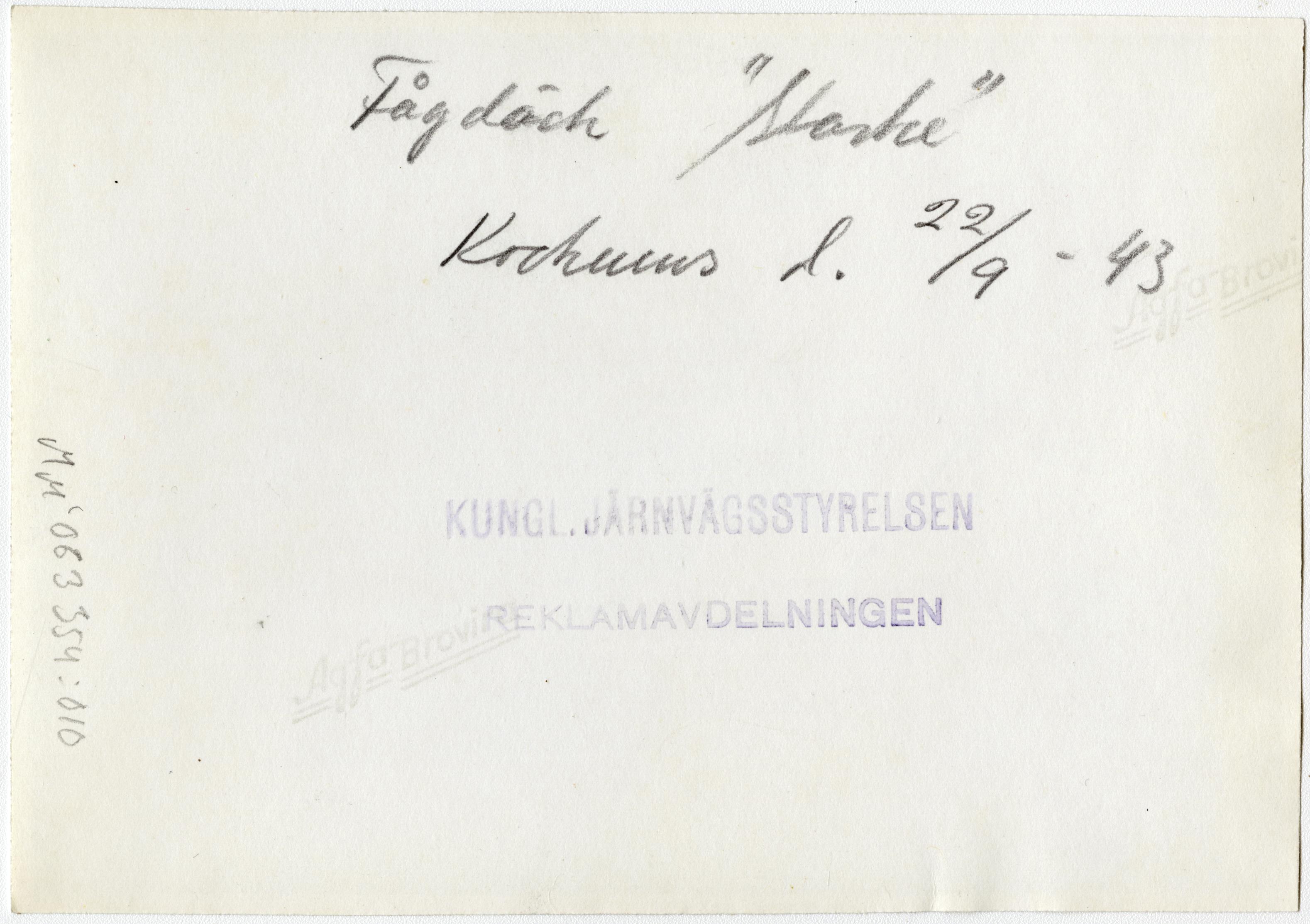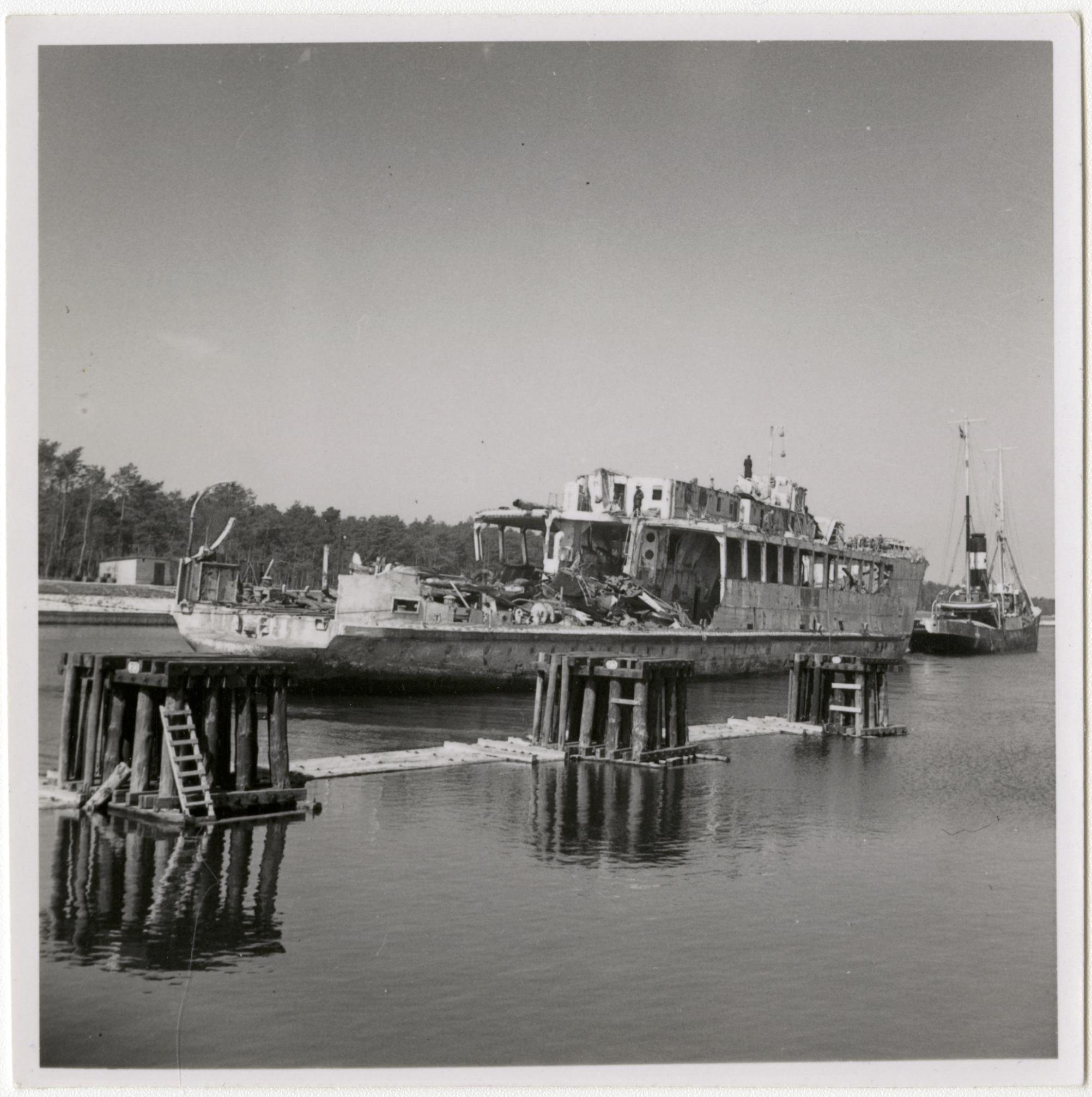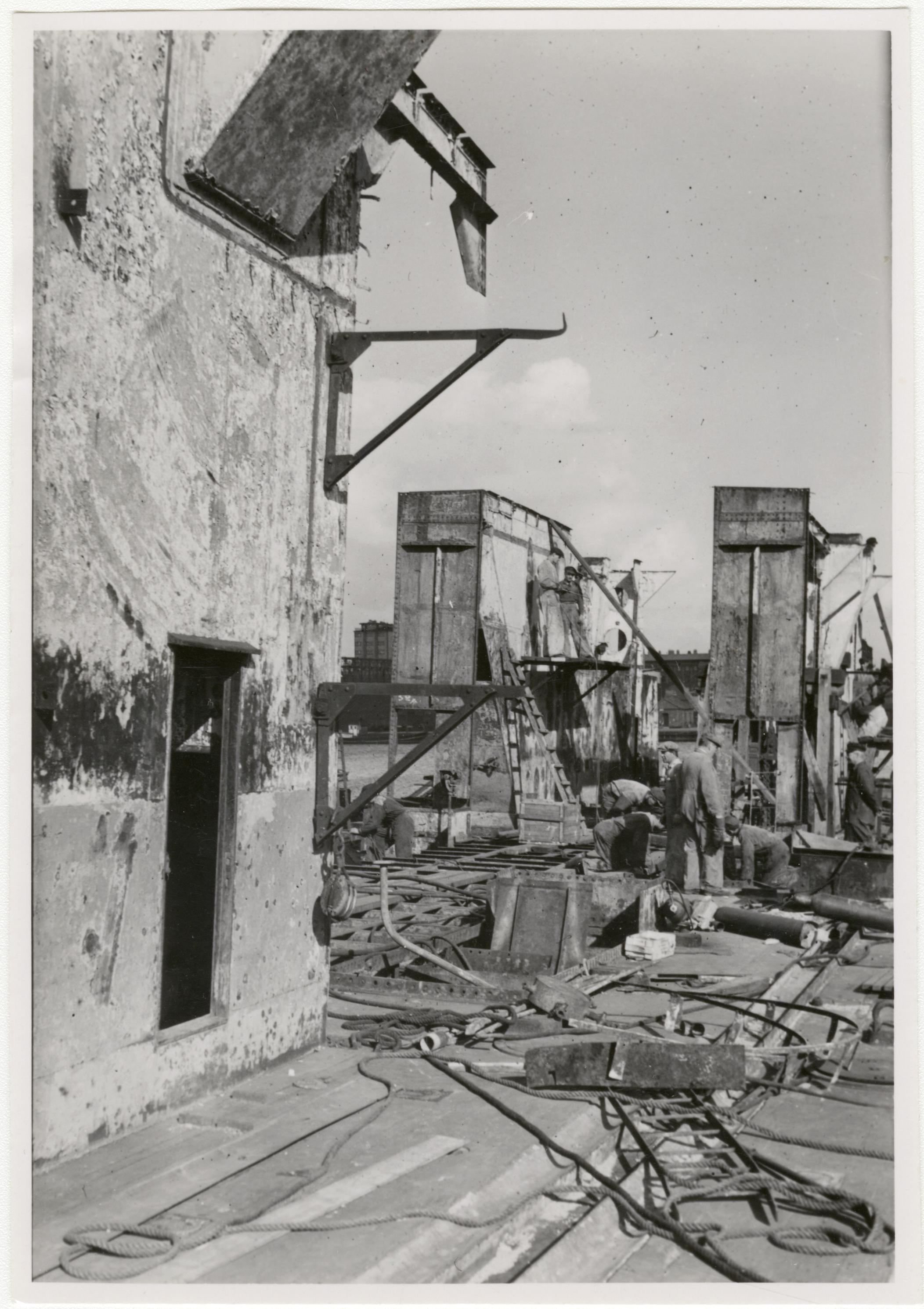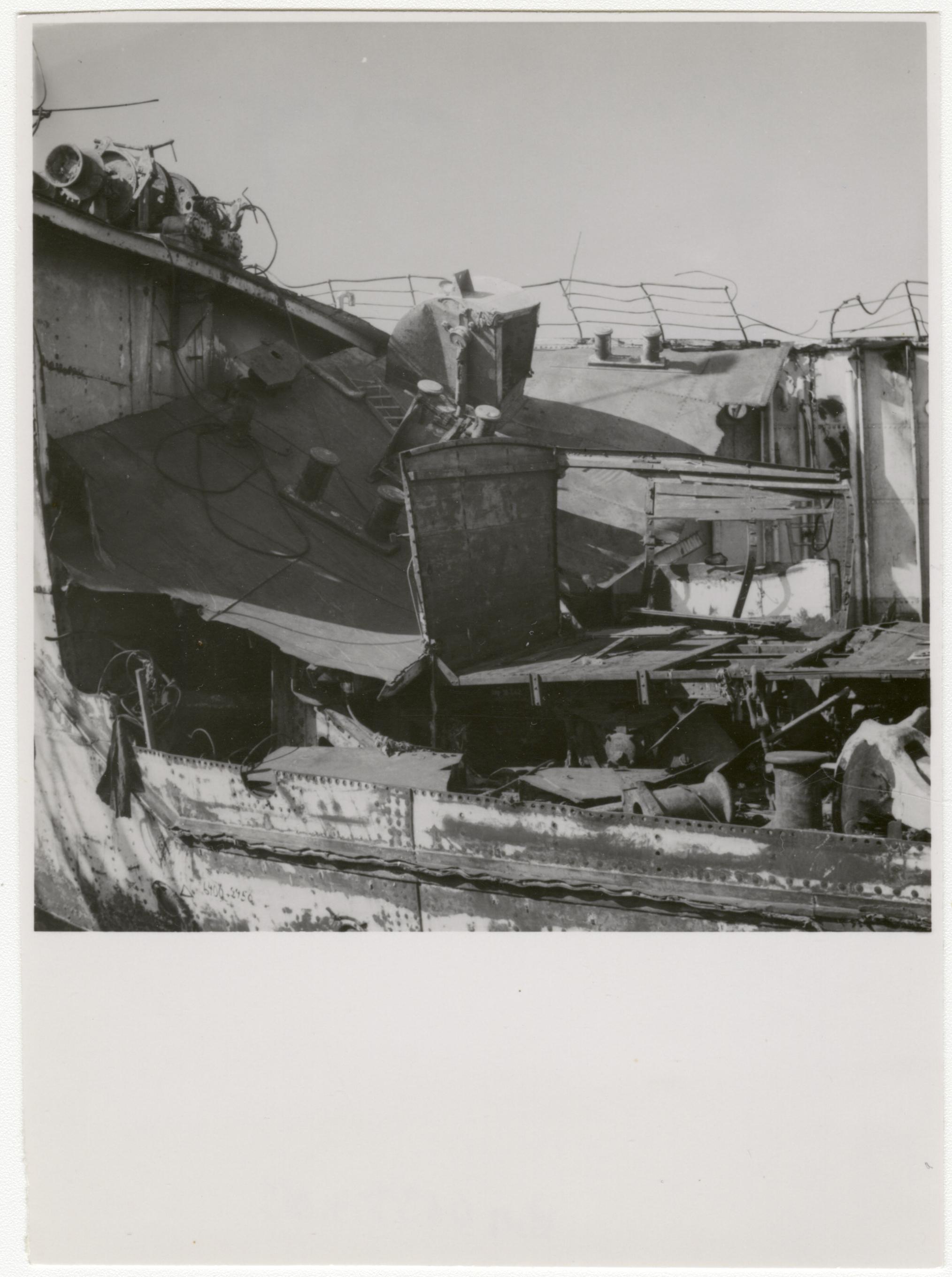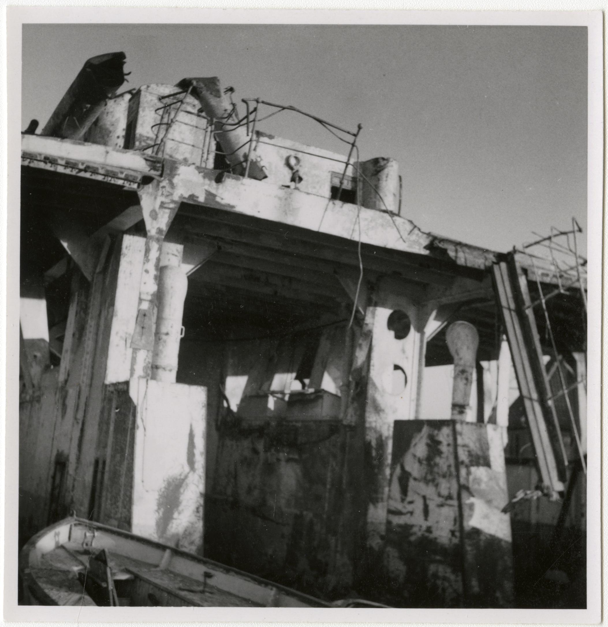 Fotografier, 14, föreställande tågfärjan Starke, dess bärgning och förlängning år 1943.