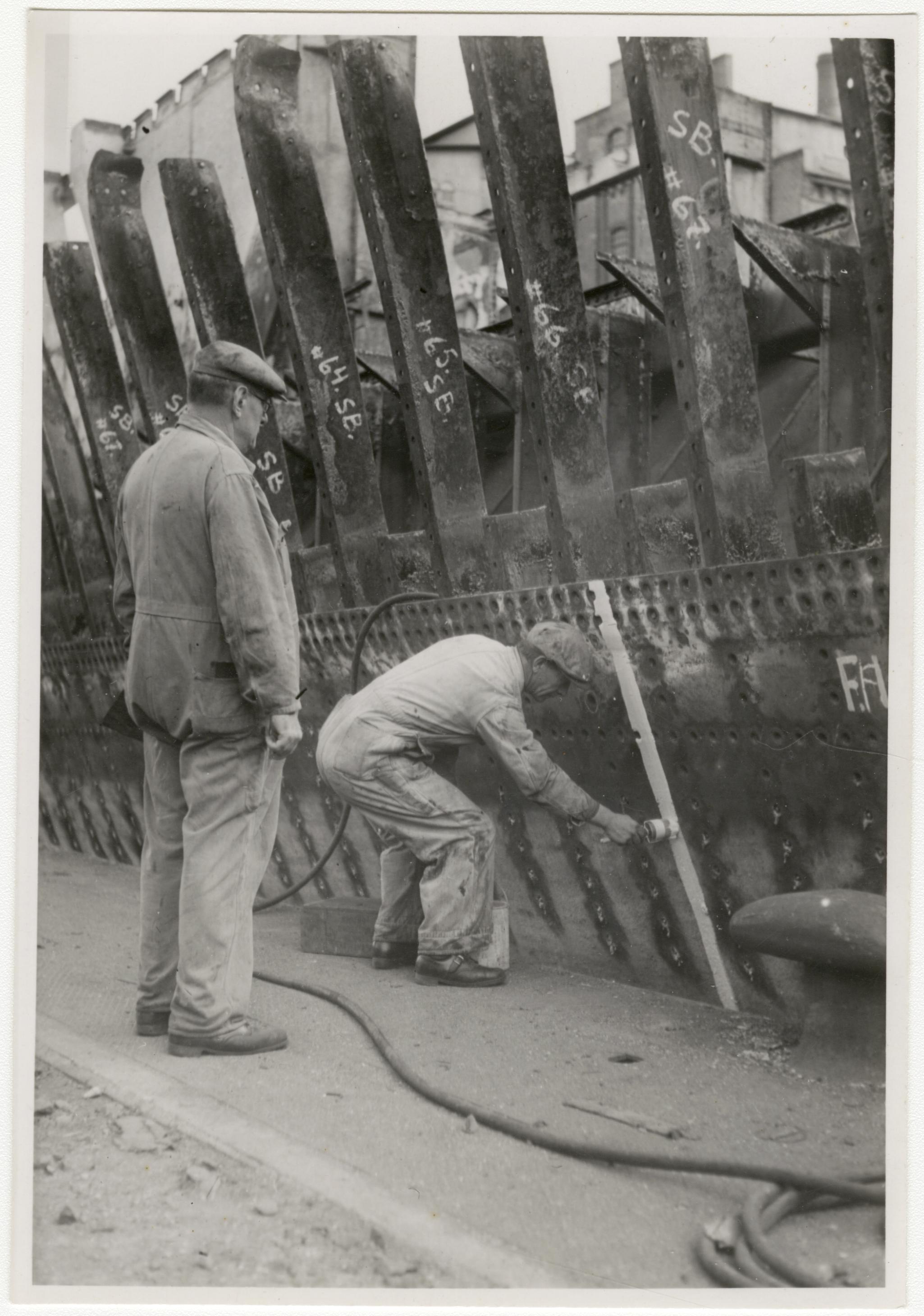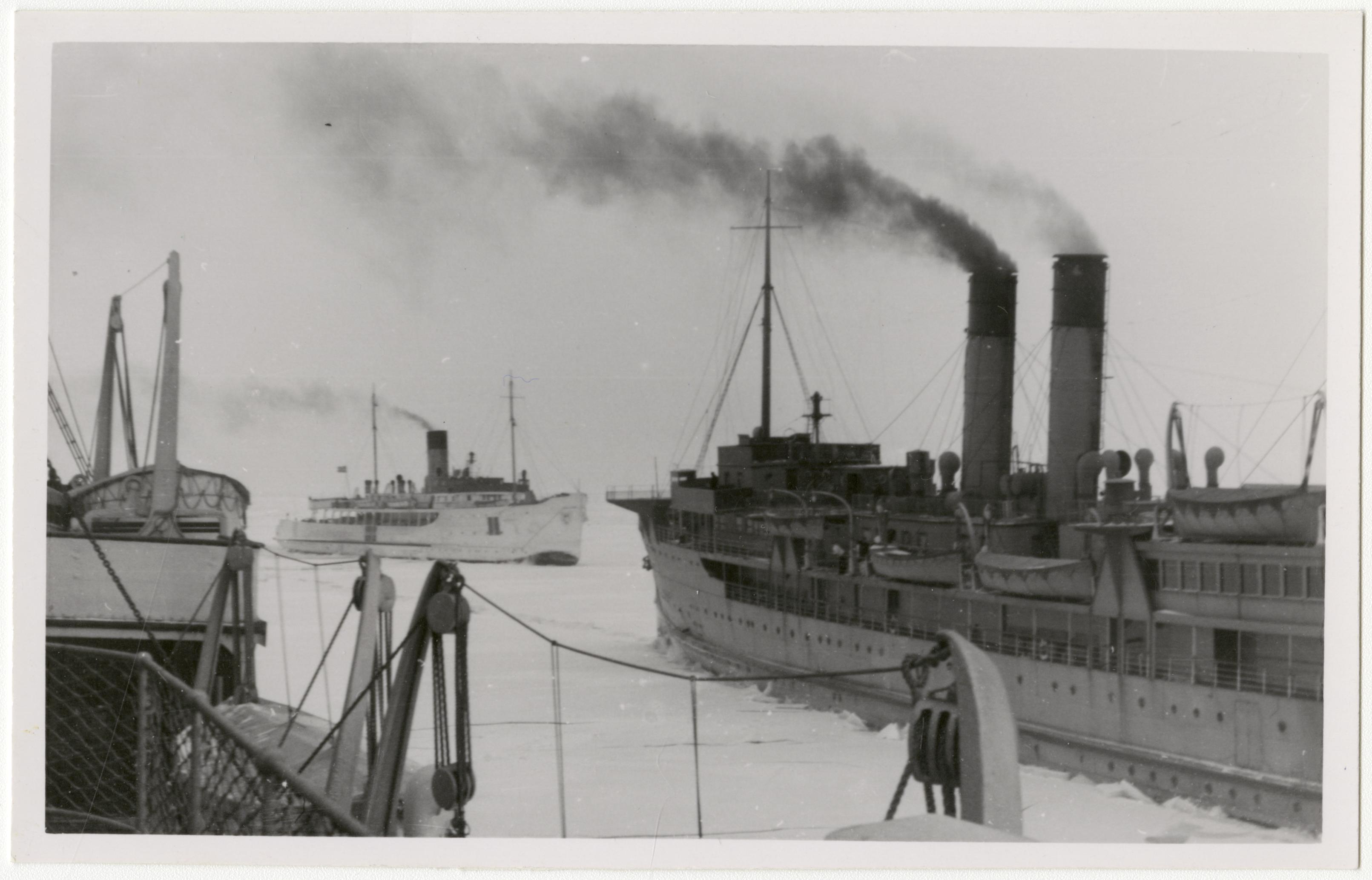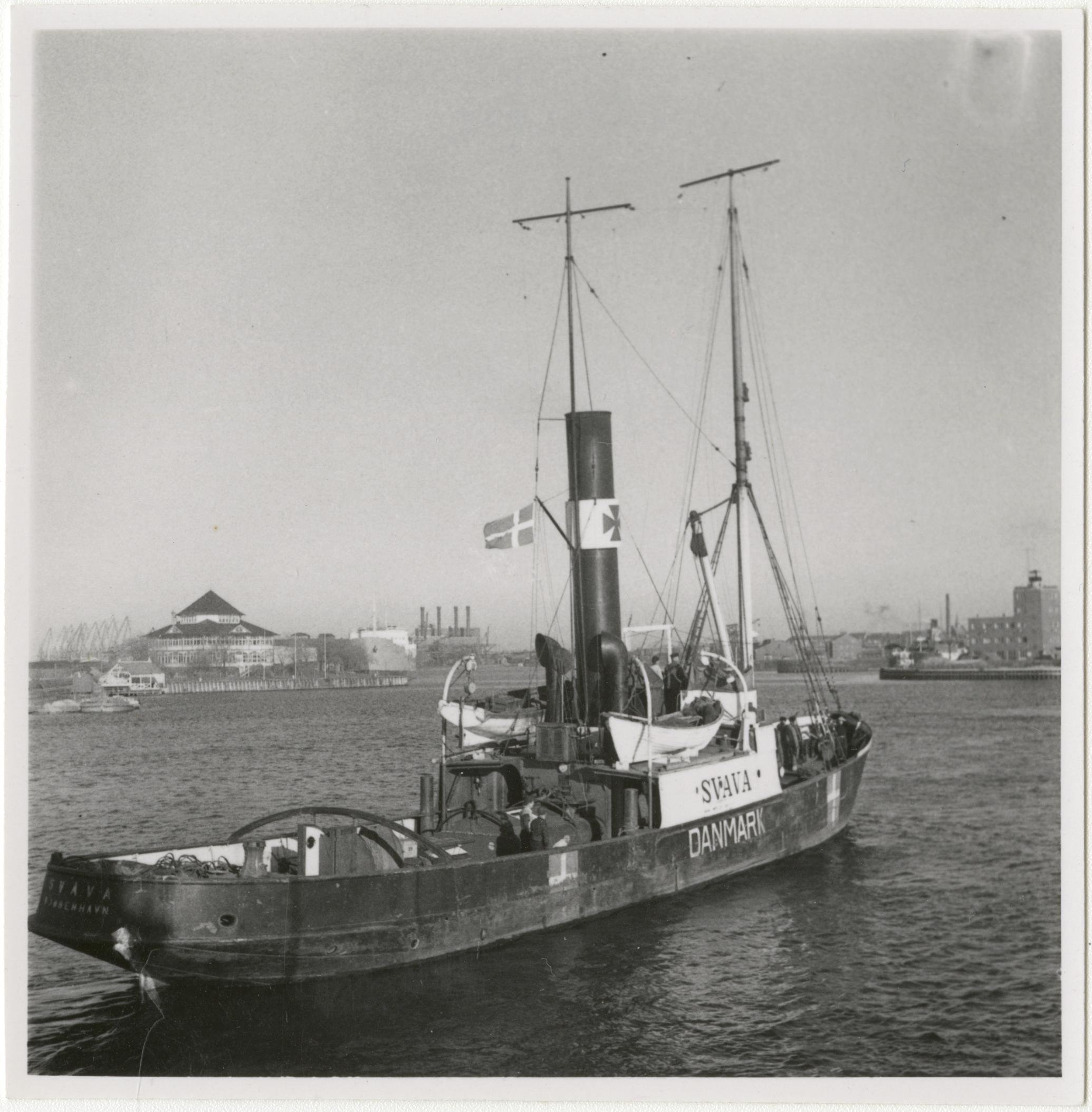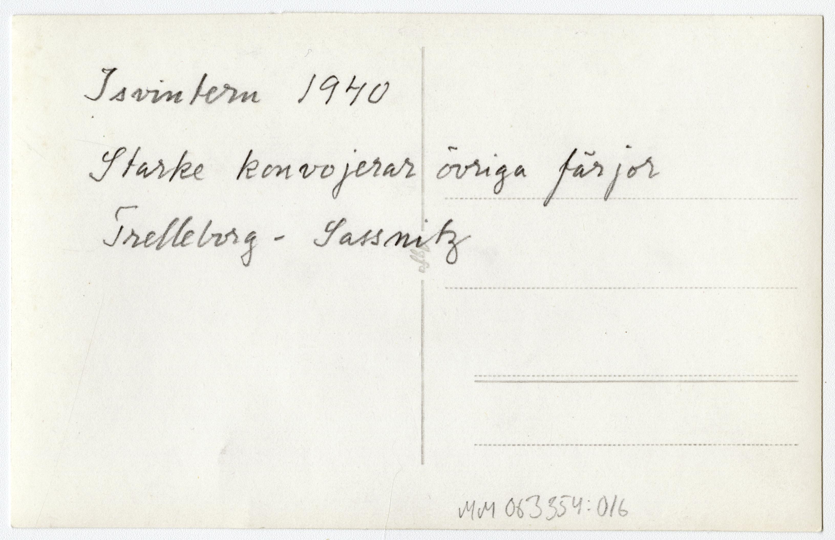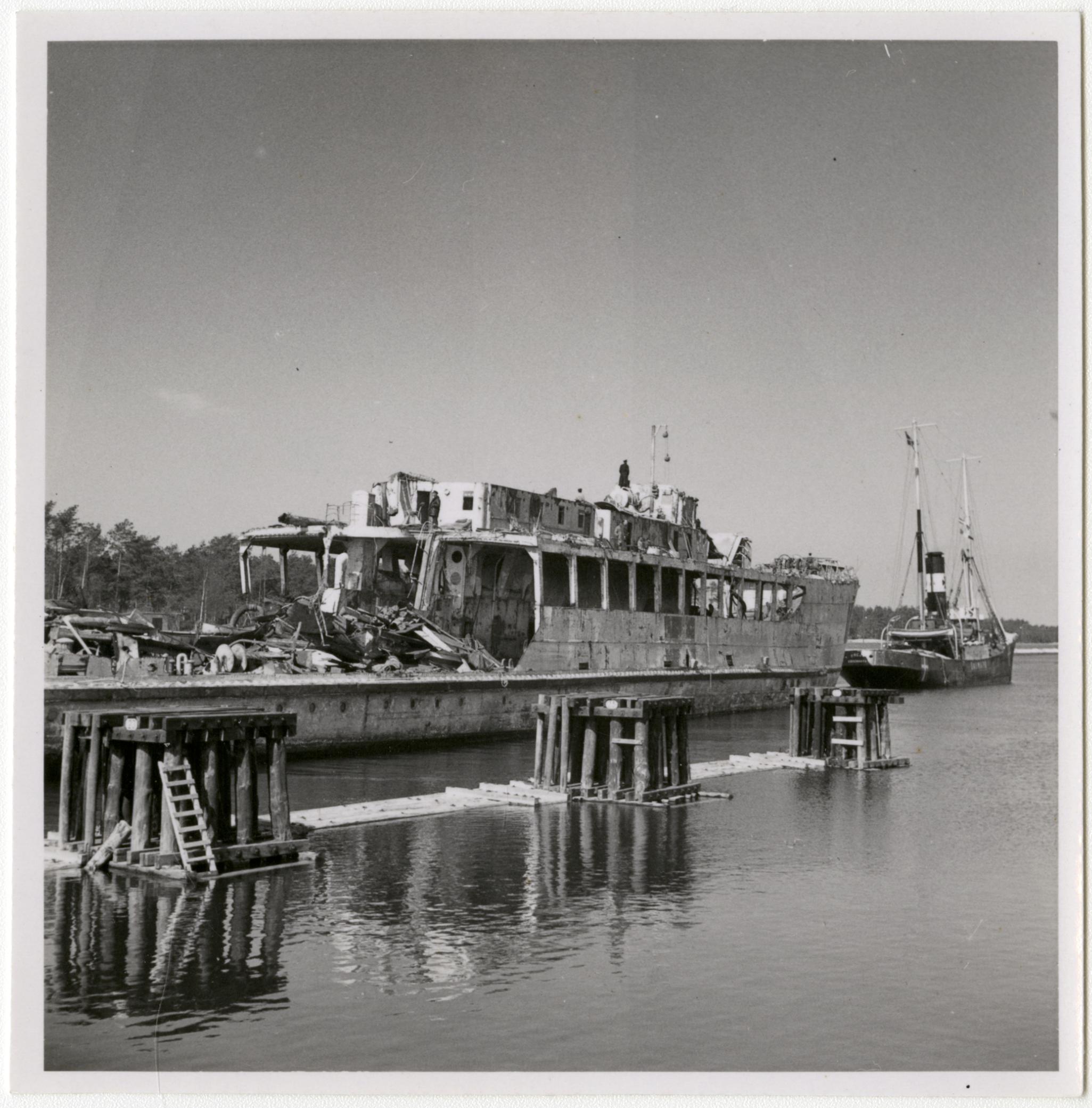 Fotografier, 14, föreställande tågfärjan Starke, dess bärgning och förlängning år 1943.