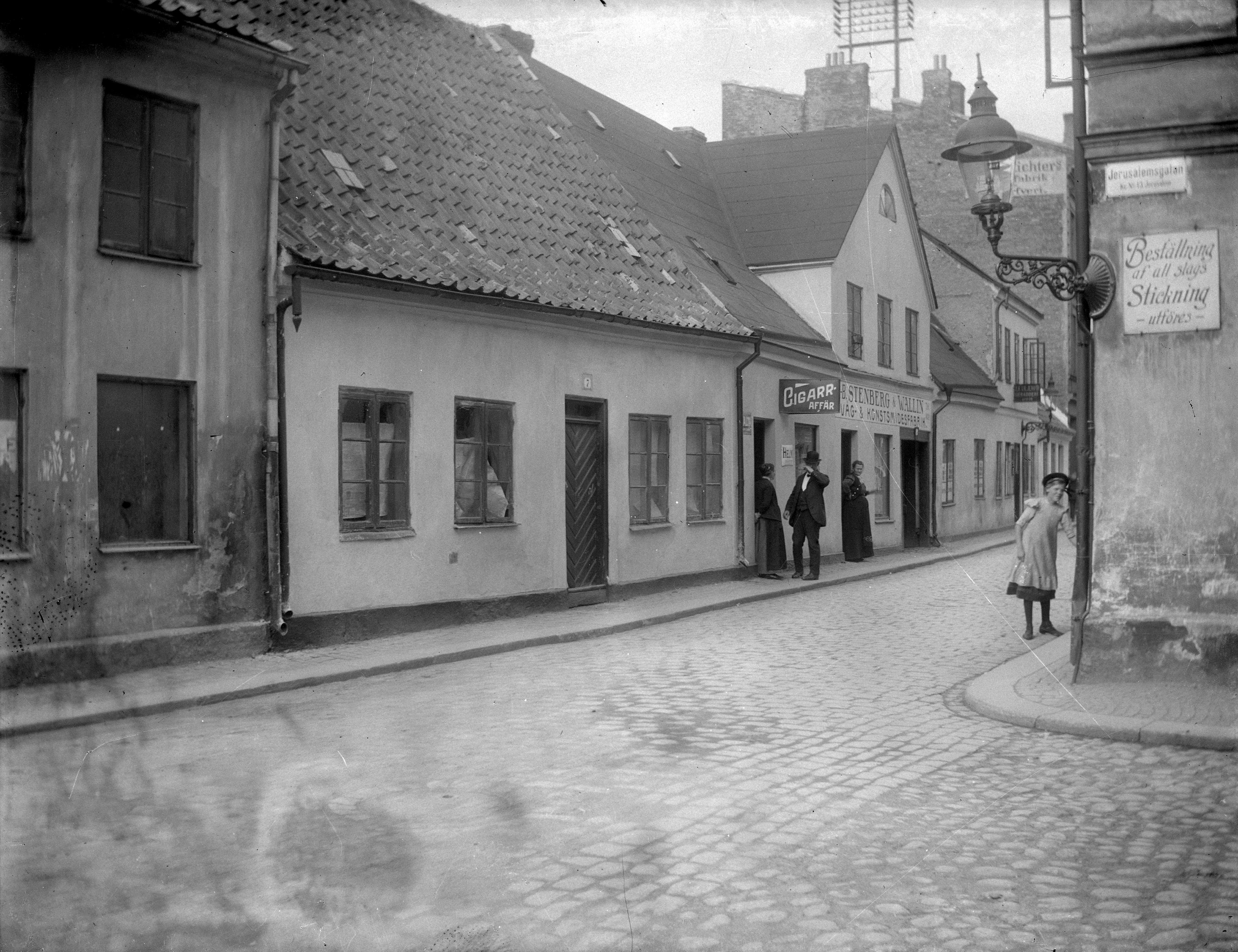 - Stadsmiljö, kullerstensgator, Kattsundsgatan. Jerusalemsgatan 21 syns i högra kanten.