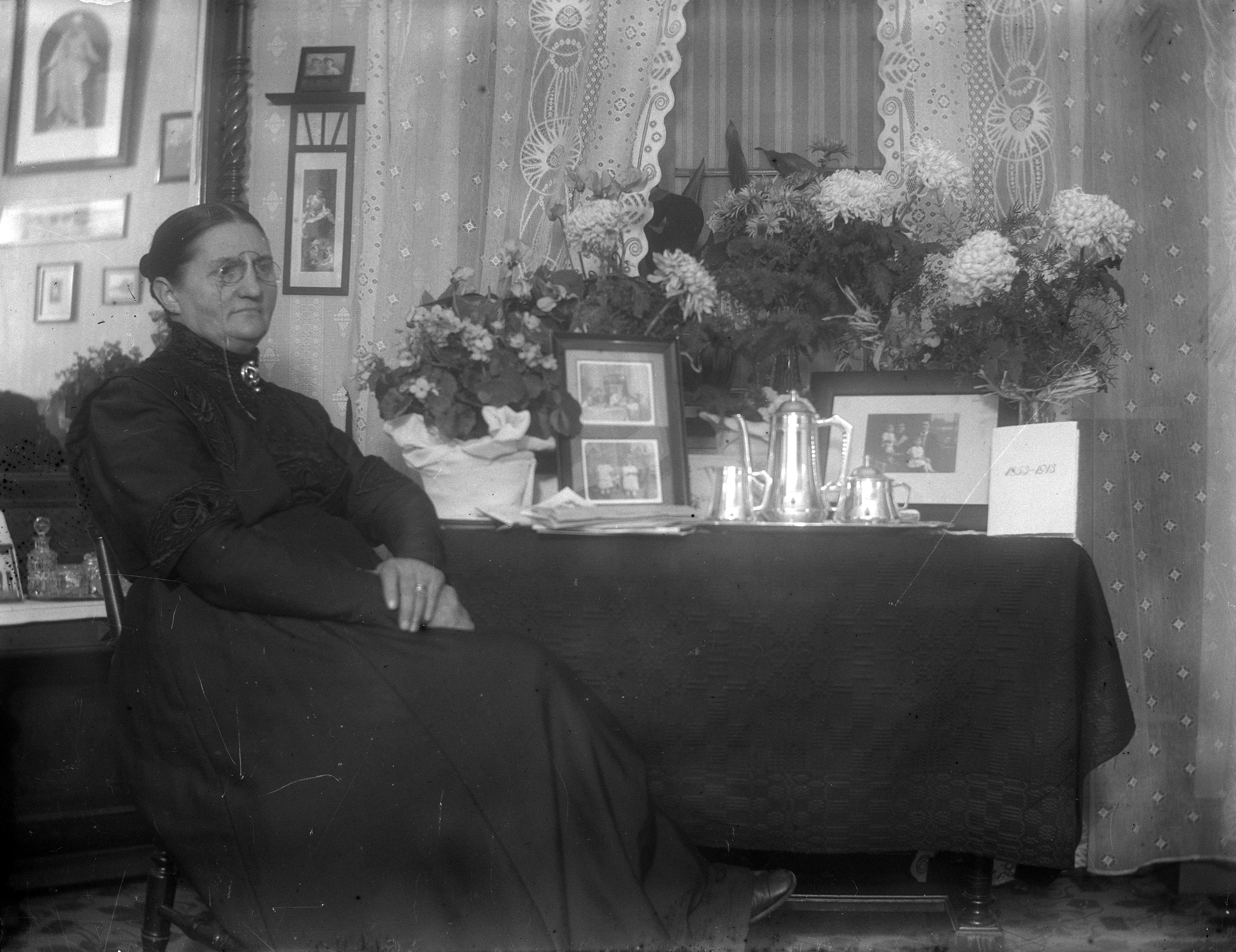 BM 002732 :: interiörbild, kvinna, bord, kvinnor, interiörbilder, blomma, blommor