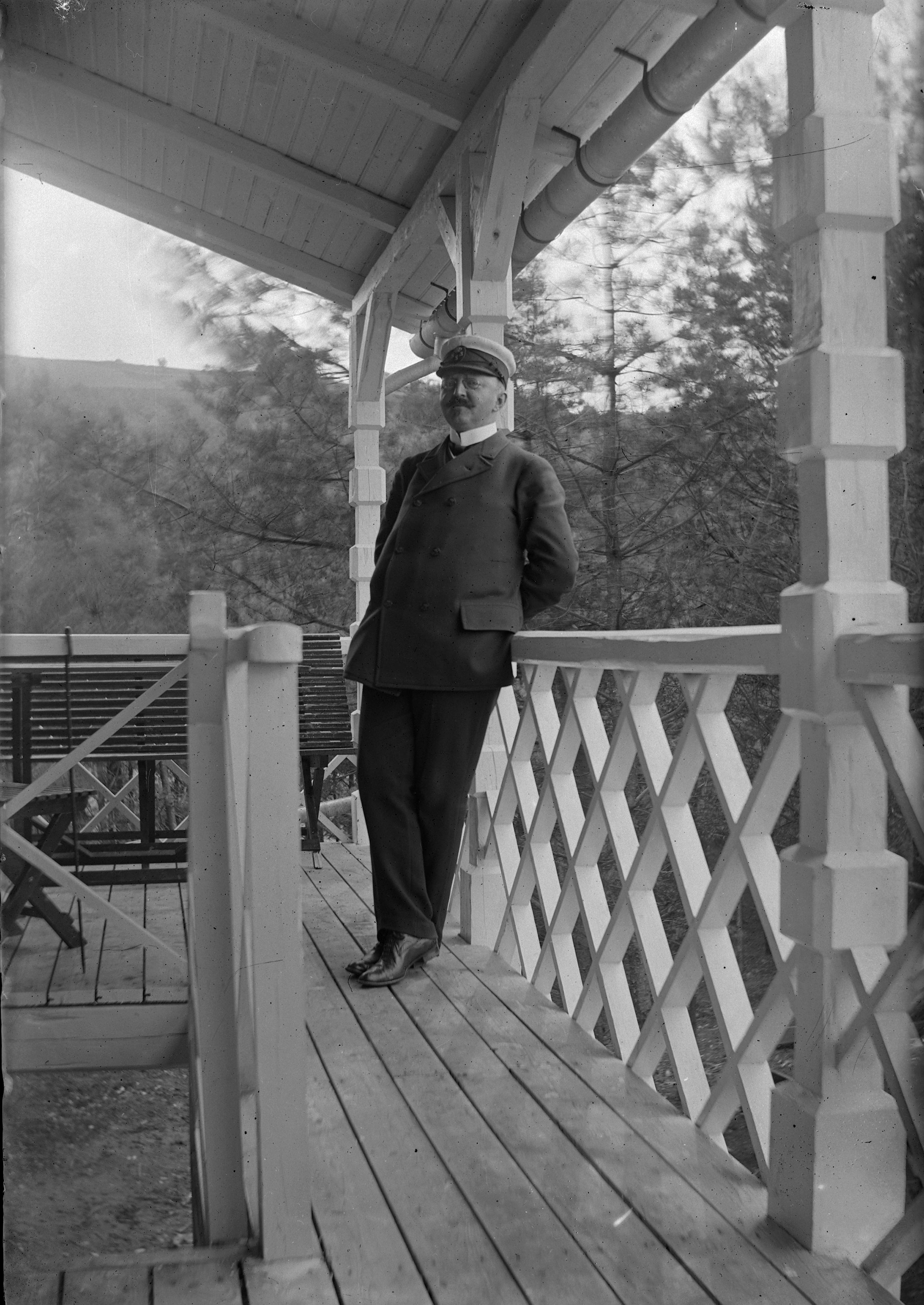 BM 003056 :: keps, balkong, balkonger, kepsar, hus, man, män, träd