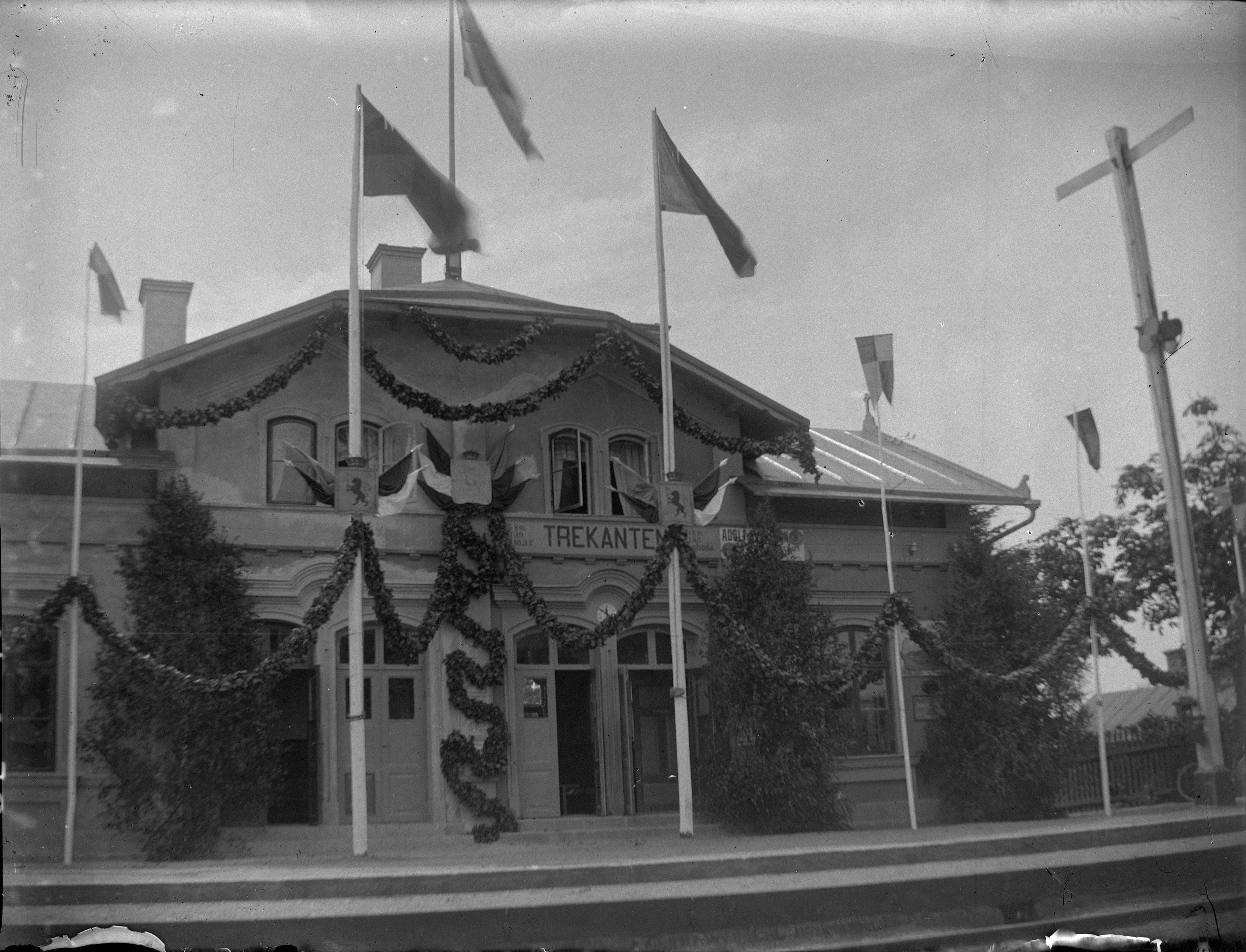 BM 003073 :: dekoration, hus, flaggstänger, dekorationer, flaggstång