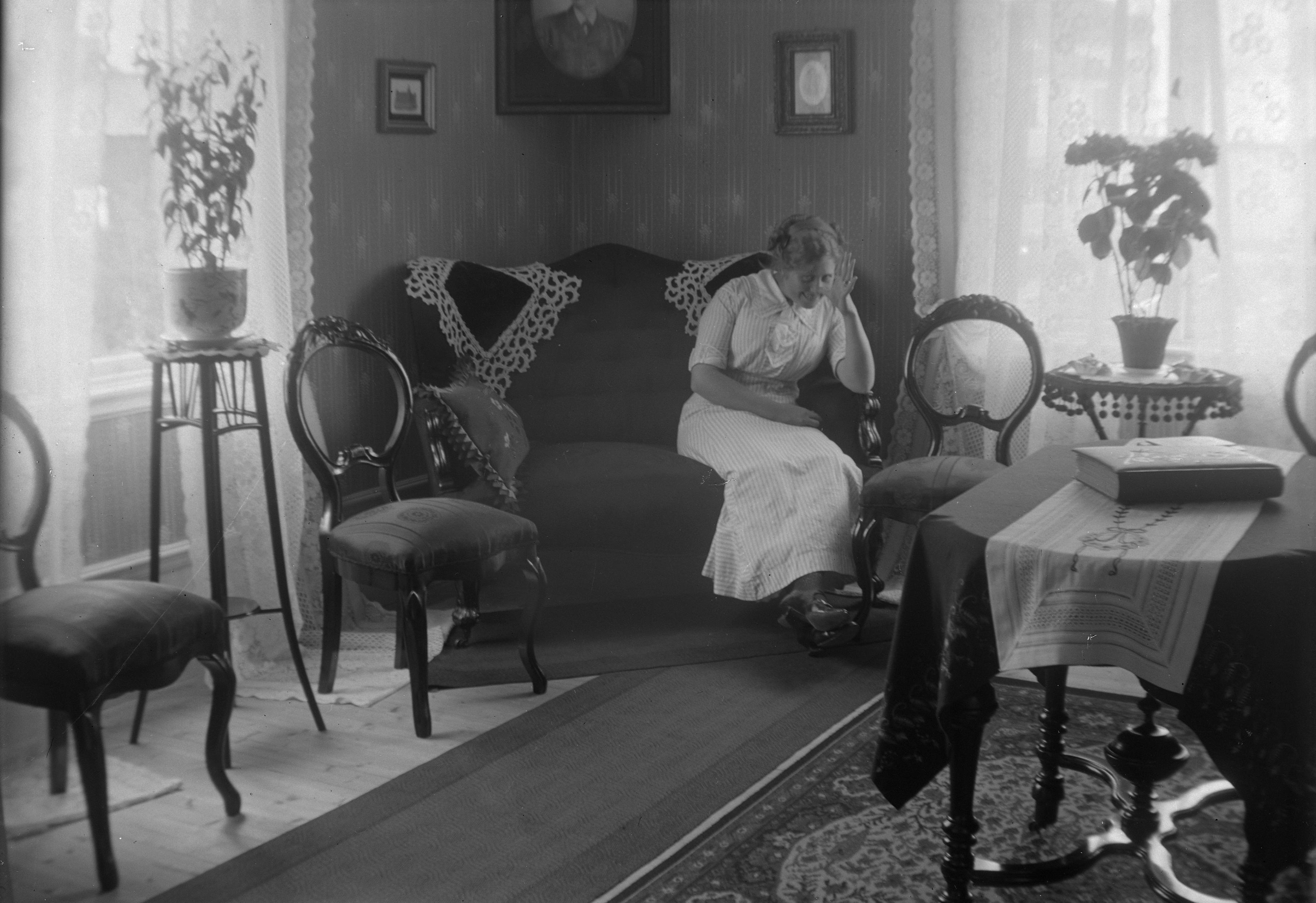 BM 003191 :: soffor, interiörbild, kvinna, kvinnor, interiörbilder, möbler, soffa, vardagsrum