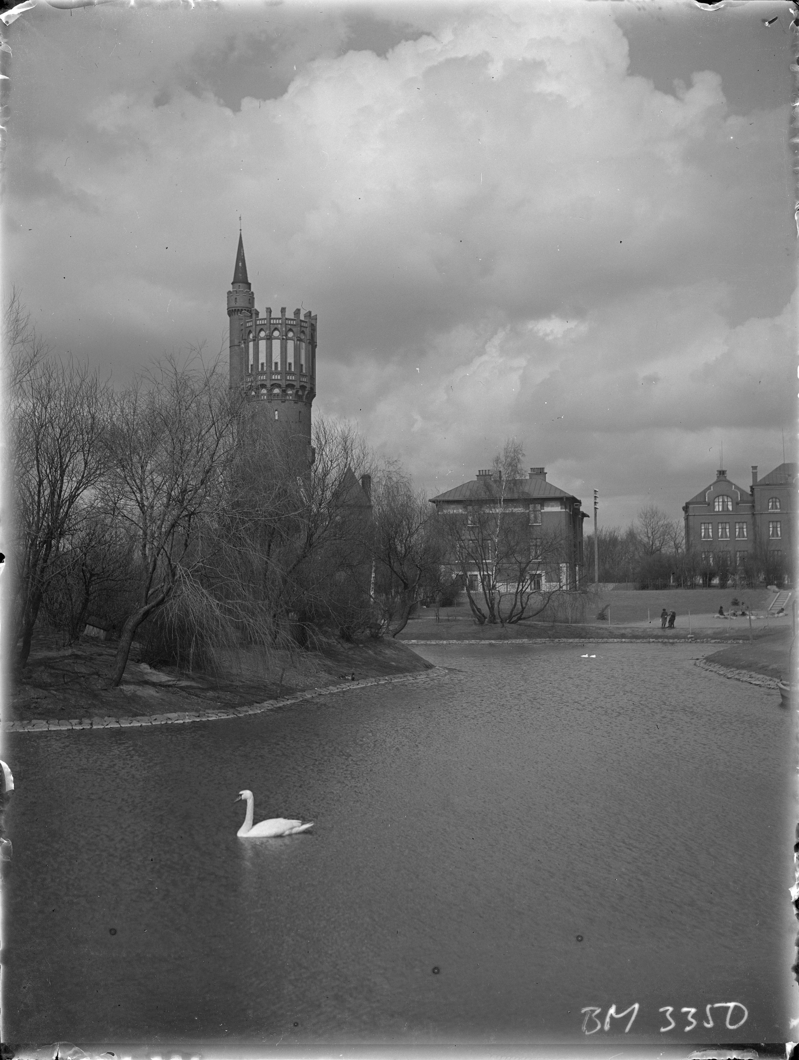BM 003350 :: svan, byggnader, byggnad, sjö, sjöar, svanar