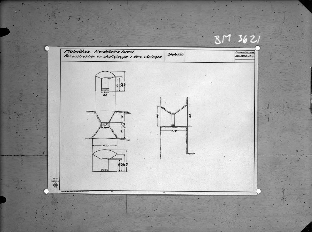 BM 003621 :: malmöhus, ritningar, skottgluggar, skottglugg, ritning