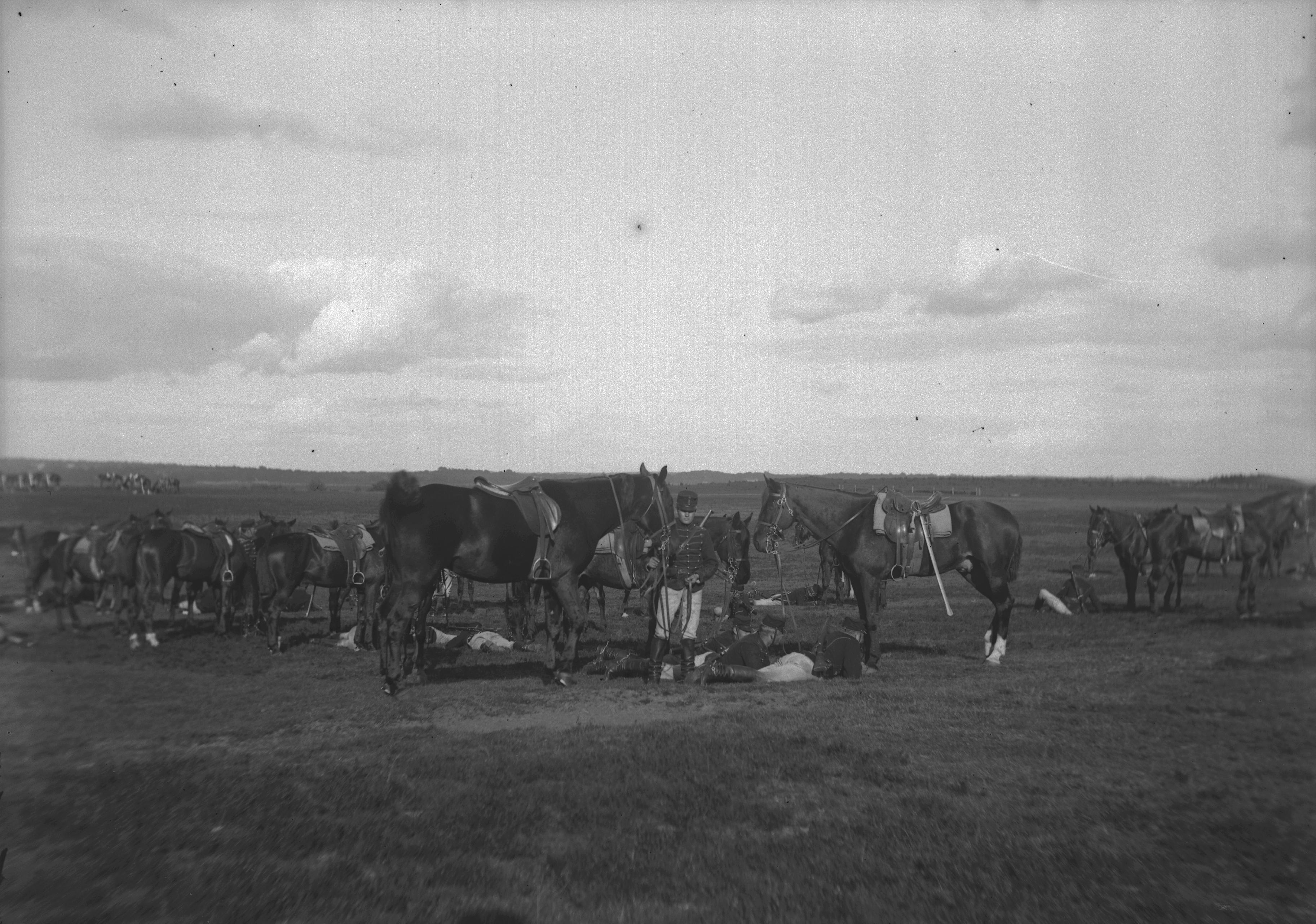 BM 003718 :: hästar, militärer, uniformer, fält, uniform, militär, häst
